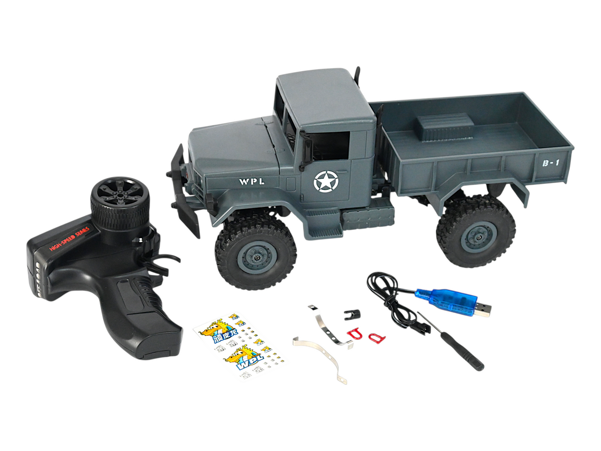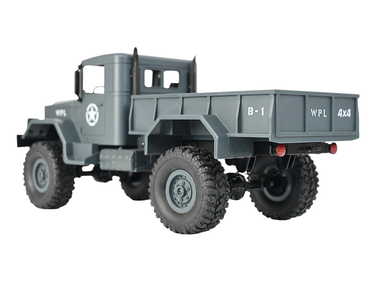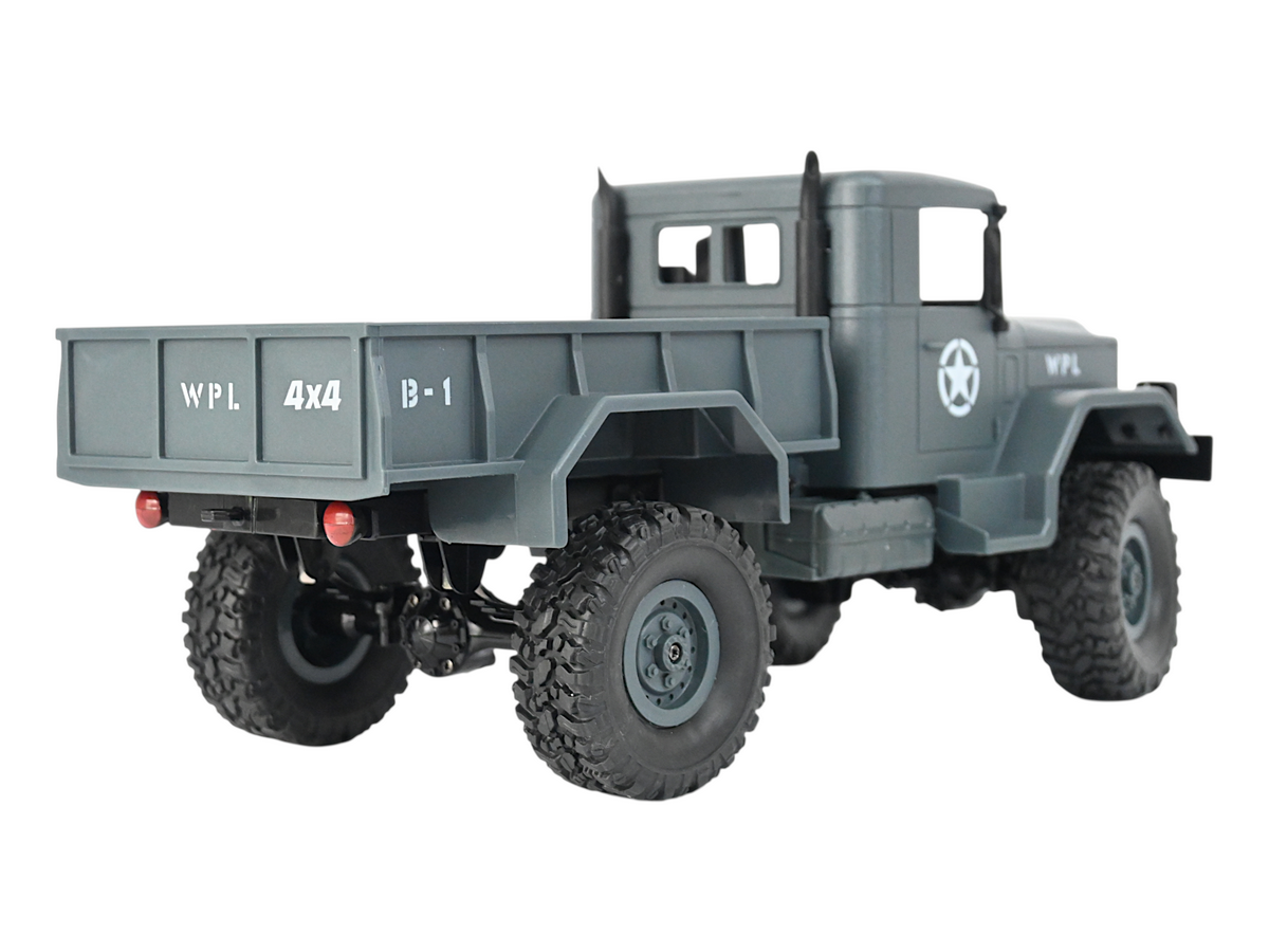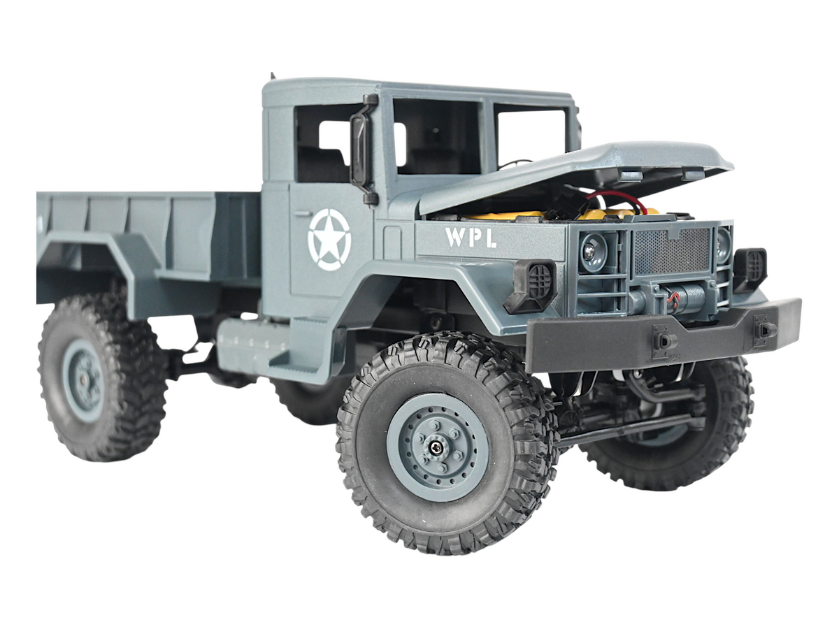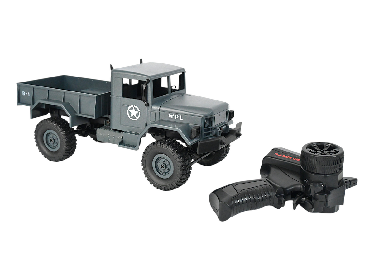 Радиоуправляемый военный грузовик, выполненный в масштабе 1/16. Модель оснащена полным приводом, действующей рессорной подвеской и мощным коллекторным электромотором. Выпускается в различных вариантах окраски, имеет богатую деталировку и светящиеся передние фары. В кабине прекрасная детализация интерьера. Кузов и кабина изготовлены из прочного АВS пластика и установлены на металлическую раму. Li-Ion аккумулятор 7.4В, 500мАч спрятан под открывающийся капот.