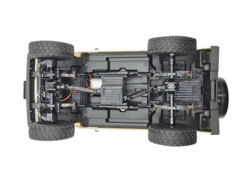 Лицензионная модель внедорожника на пульте управления в масштабе 1/10. Оснащен полным приводом и мощным коллекторным электромотором. Внедорожник имеет богатую деталировку и оборудован светящимися фарами. Кузов изготовлен из прочного АВS пластика, в кабине можно увидеть сиденья, руль и интерьер.