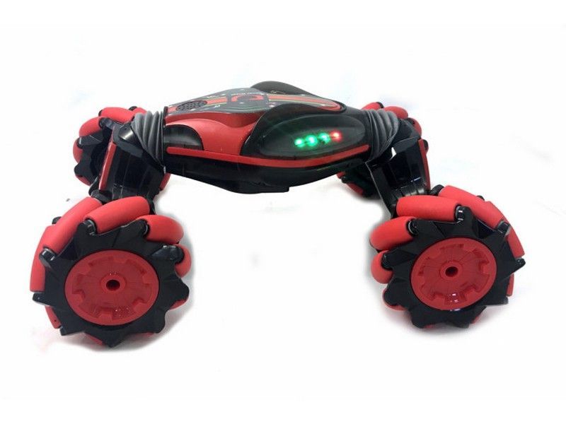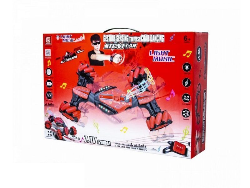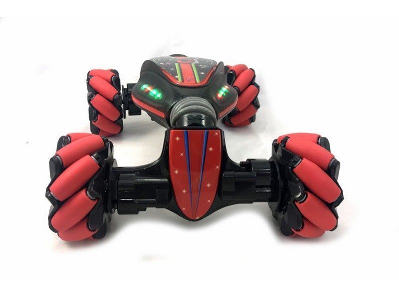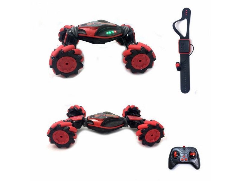 Машинка-перевертыш Hyper управляется двумя способами: от классического пульта управления и от браслета, который крепится на руку. Опустил немного руку вперед, машинка мчится вперед, нужно объехать препятствие, легко, наклоняешь руку влево или вправо, и машинка тут-же реагирует на команду! Приятный бонус - машинка и пульт-браслет на аккумуляторах и заряжаются от обычного USB.