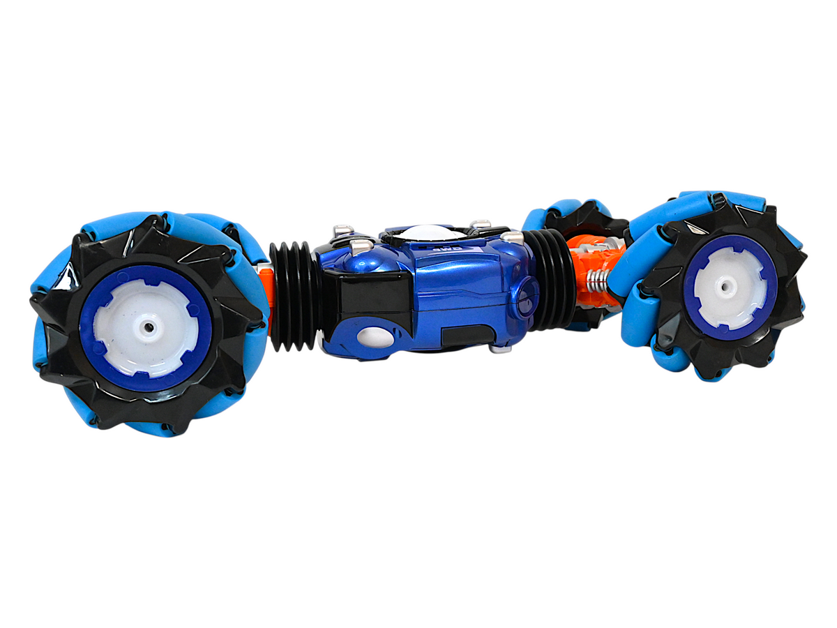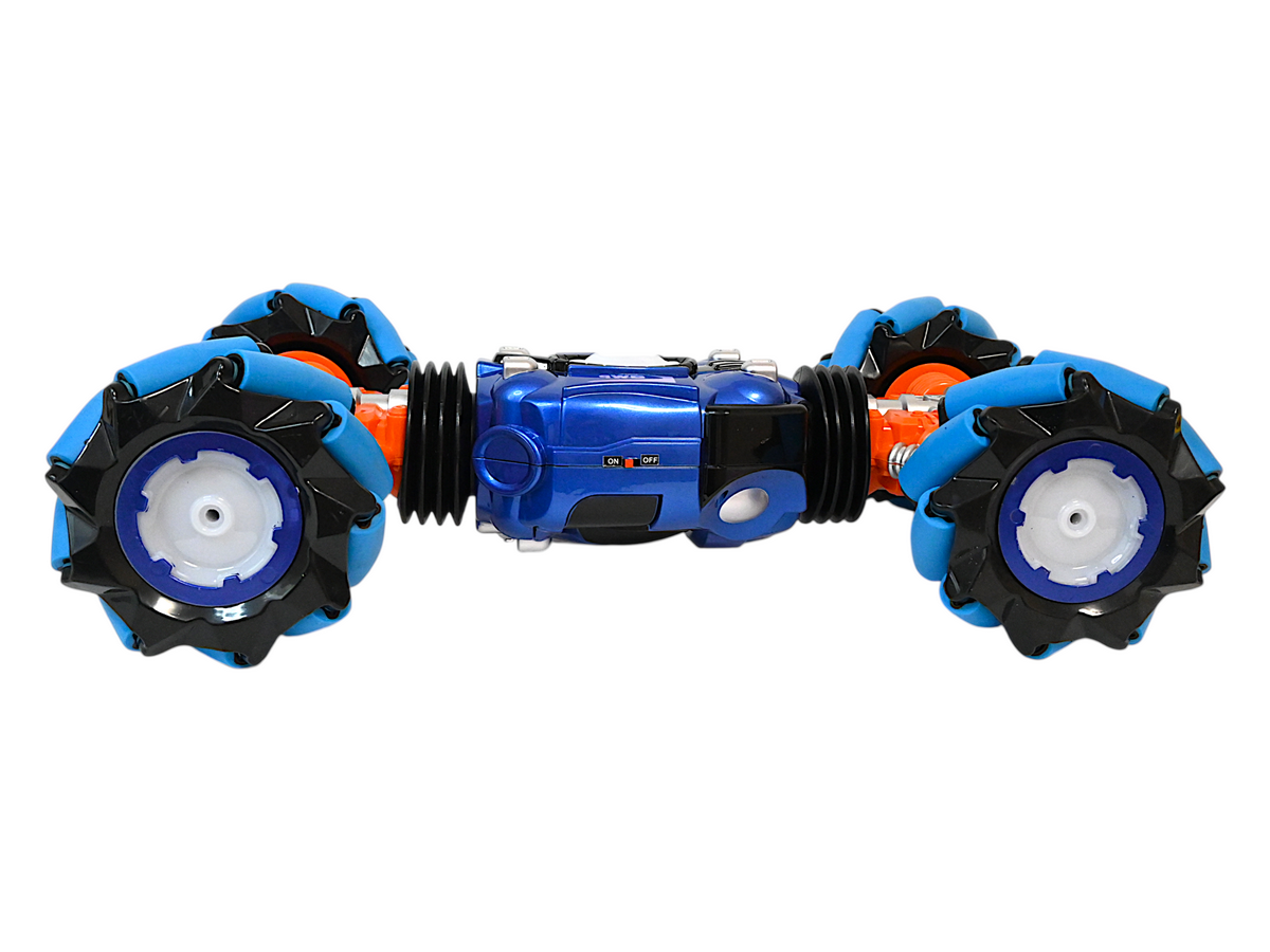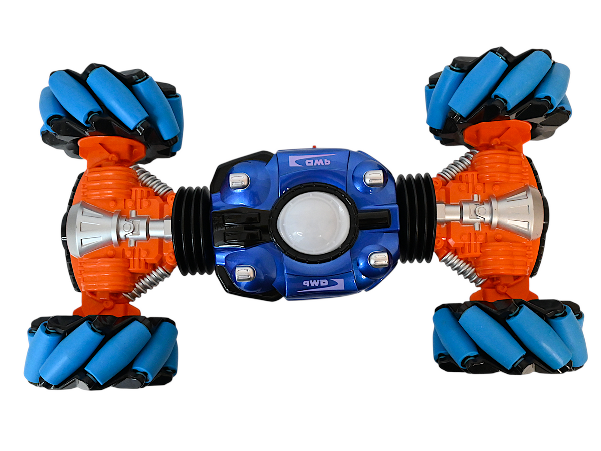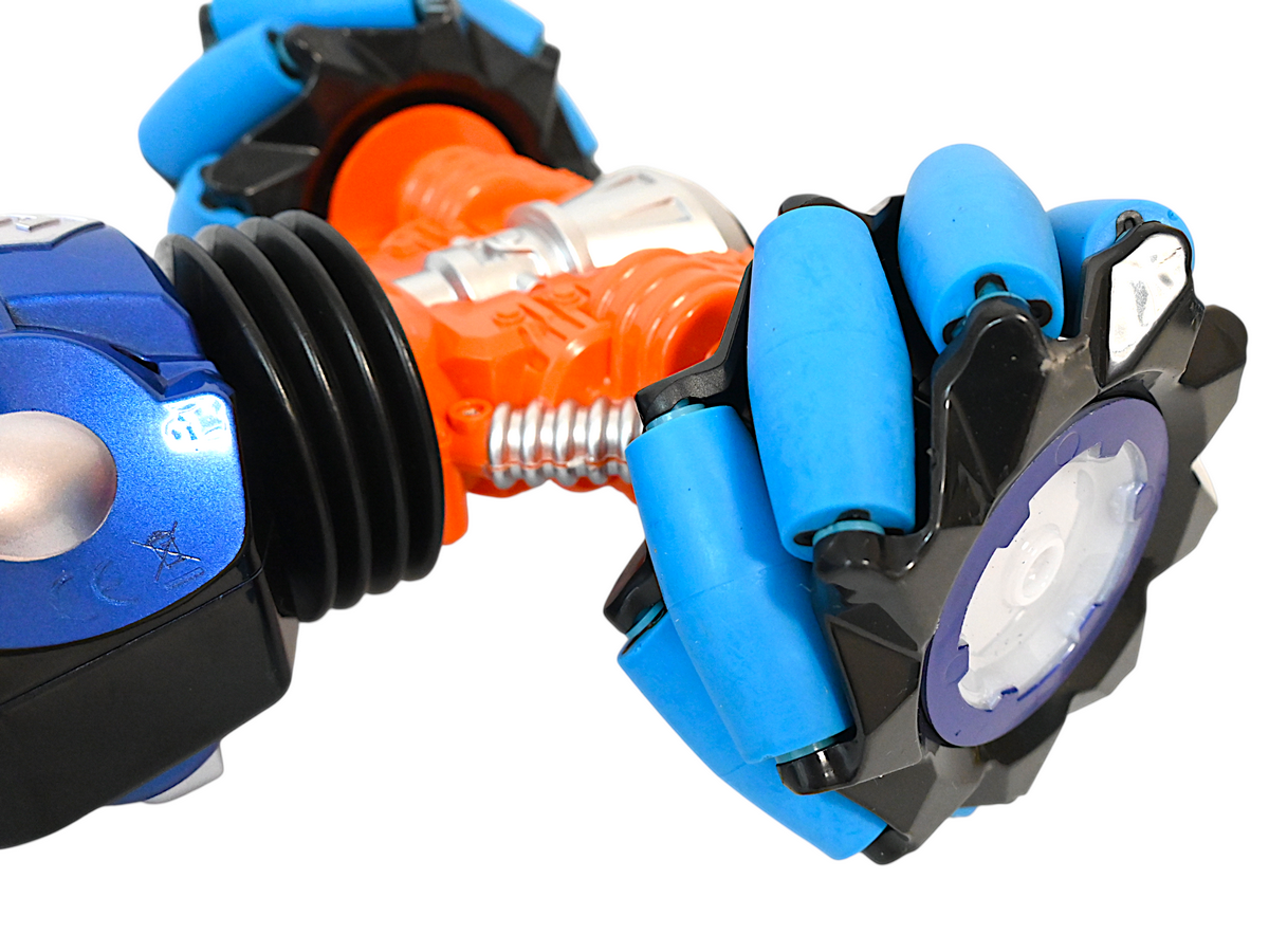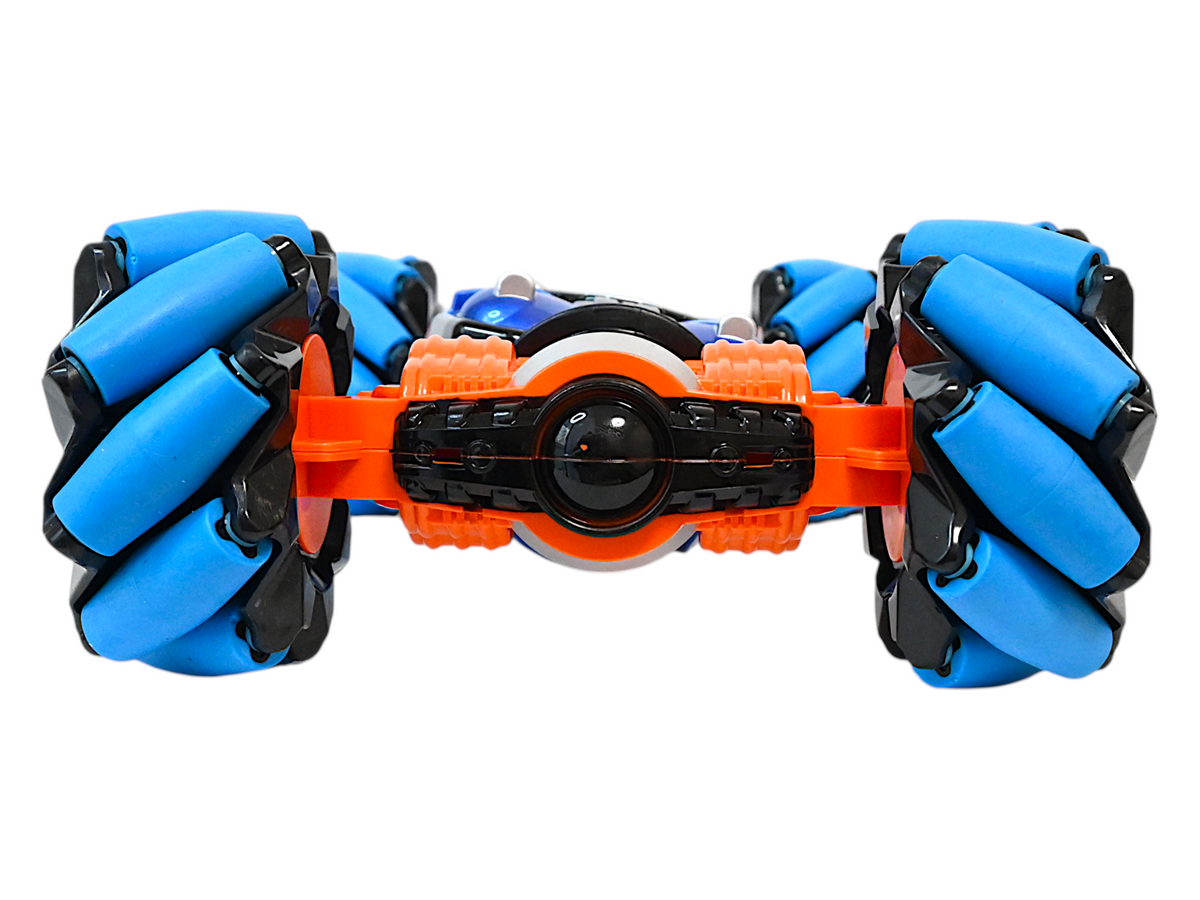 Благодаря специальному устройству колес, машинка способна двигаться не только вперед/назад/вправо/влево, но и под углом 45°. Также она имеет уникальную способность двигаться боком, а это так важно при объезде препятствий. Большие колеса позволяют не только преодолевать препятствия, а также выполнять разворот на месте по часовой стрелке.