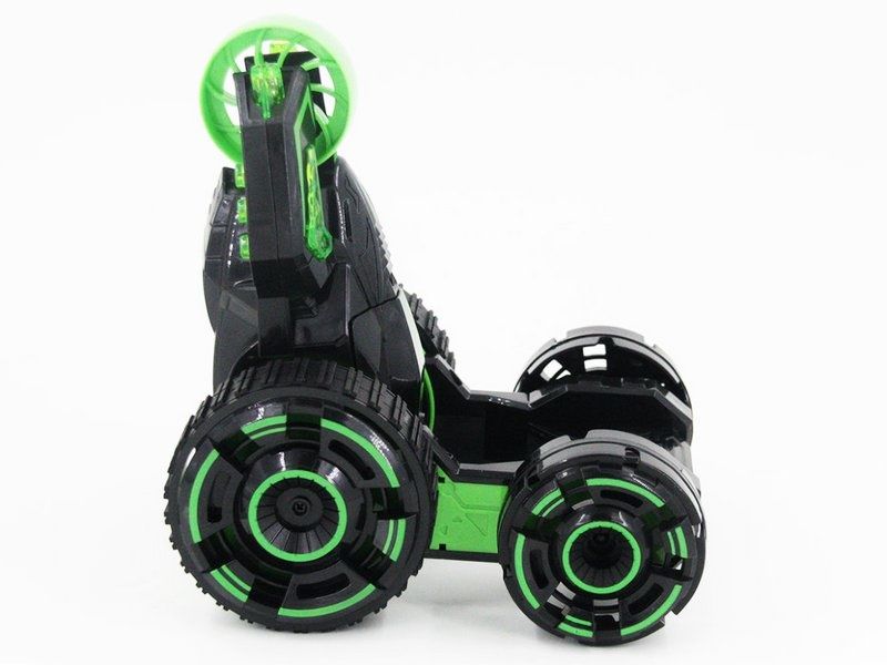 Это изумительная игрушка, которая едет по всем типам поверхности, легко преодолевает бездорожье. Машинка имеет в своей конструкции 5 колес, 4 основных и одно дополнительное, которое задействуется для переворотов, а так же чтобы выехать из сложной ситуации. Машинка может транформироваться в процессе езды. Эта игрушка едет даже вверх ногами, а благодаря пятому колесу может преодолеть сложные препятствия.