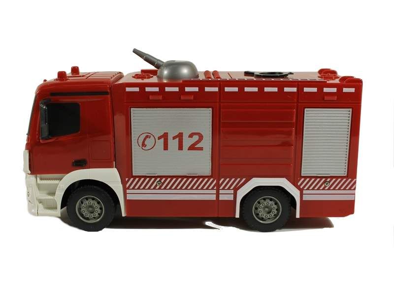 Машинка имеет световые эффекты - мигалку сине-красного цвета и звуковую пожарную сигнализацию. Но и это еще не все. В машинку можно залить воды в специальное отверстие и тогда она сможет, как настоящая пожарная машина, выпускать стрелу воды для тушения пожара.