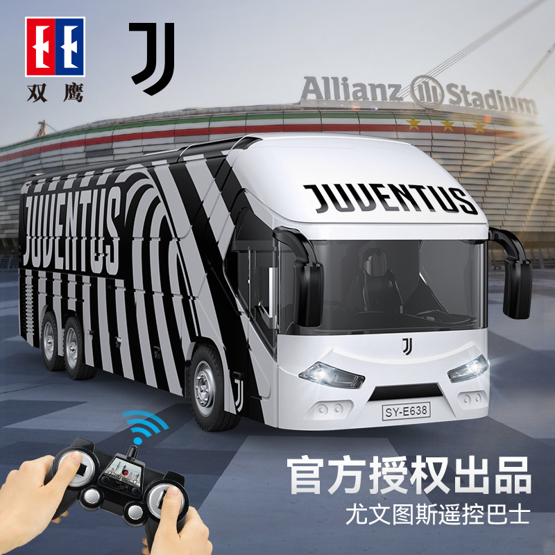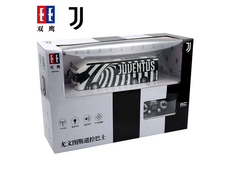 Радиоуправляемый автобус ФК Ювентус от Double Eagle - точная полноприводная копия своего прототипа в масштабе 1/18. Модель свободно движется во всех направлениях: вперед, назад; поворот вправо, влево; тормоз.