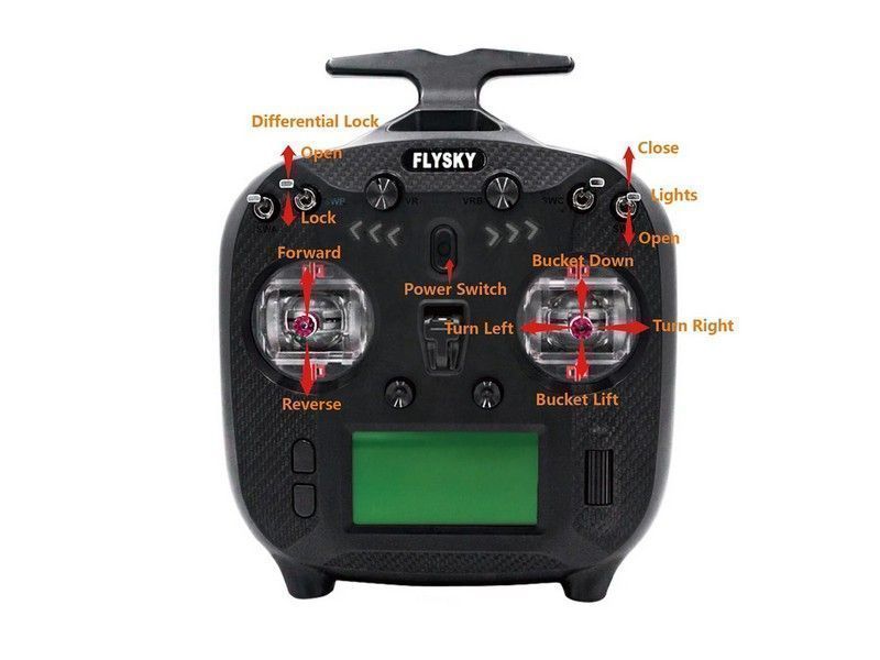 Управлять устройством можно при помощи пульта на частоте 2,4 ГГц. Так же с пульта управляется поднятие кузова грузовика. Вы сможете загрузить кузов вручную или при помощи экскаватора, перевести на нужное место и выгрузить автоматически.