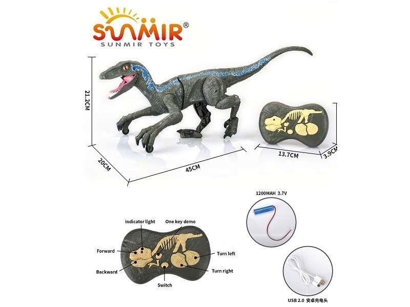 Радиоуправляемый динозавр SUNMIR Велоцираптор (синий), звук, свет