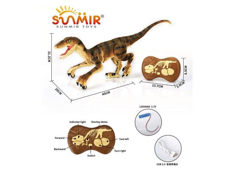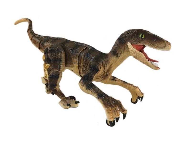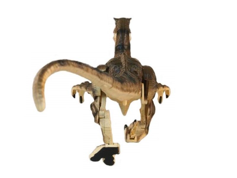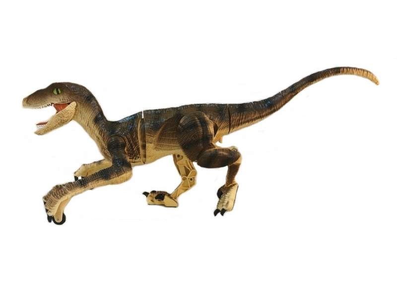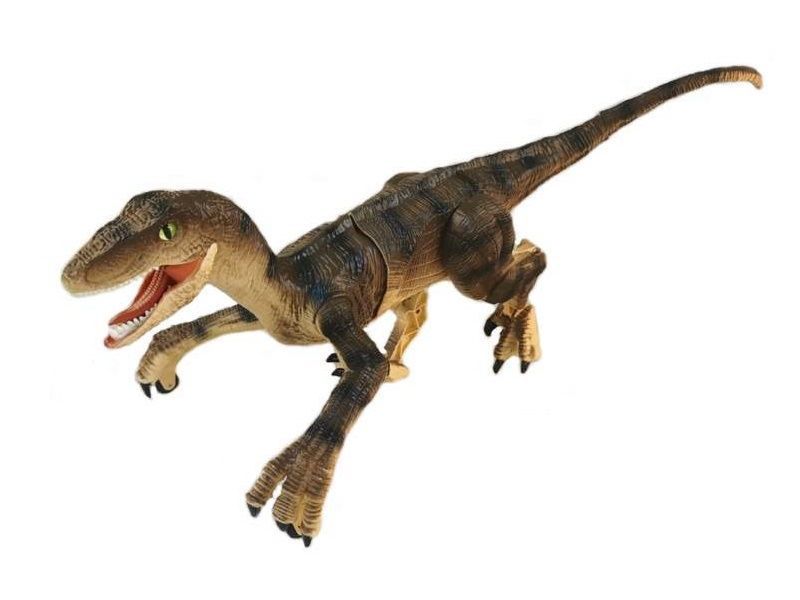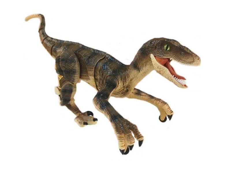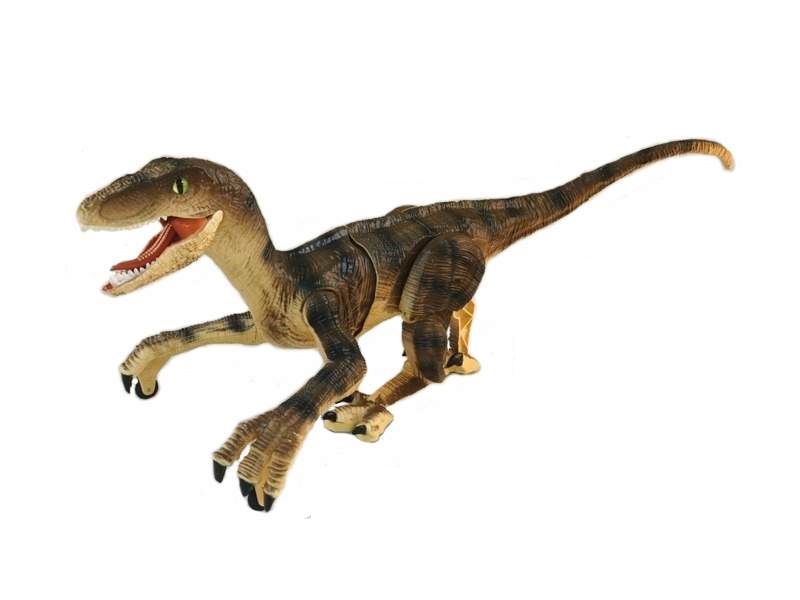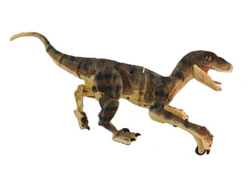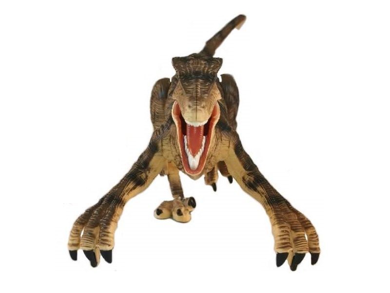 Такого питомца на радиоуправлении можно приютить у себя. Он может двигаться вперед и назад, поворачивать вправо, влево и при движении реалистично изгибается тело и шевелится хвост. Благодаря колесикам, установленным на передних конечностях, велоцирапотор имеет дополнительные точки опоры и поэтому очень устойчив. Подсветка пасти в темноте выглядит зловеще и придает динозавру реалистичности. Кроме того, динозавр издает реалистичные звуки.