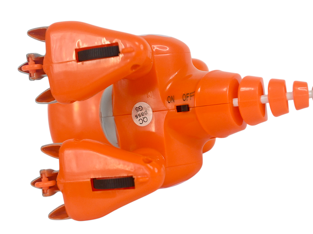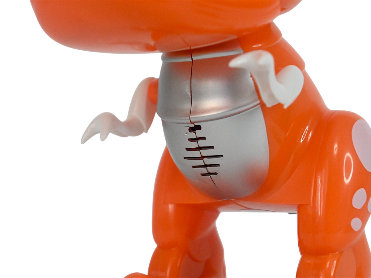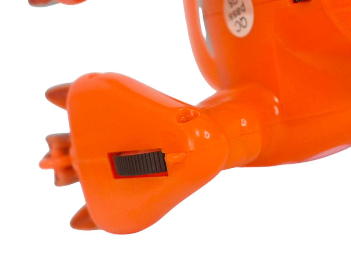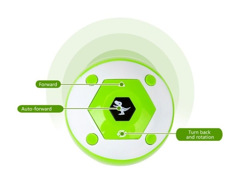 Следуя командам с пульта малыш динозавр двигается вперед, назад, влево, вправо. Не даже используя пульт дистанционного управления, можно заставить динозавра двигаться! Коснитесь сенсора на затылочной части головы динозавра, и динозавр повернется против часовой стрелки. Положите руку на голову динозавра, и динозавр автоматически продвинется вперед.