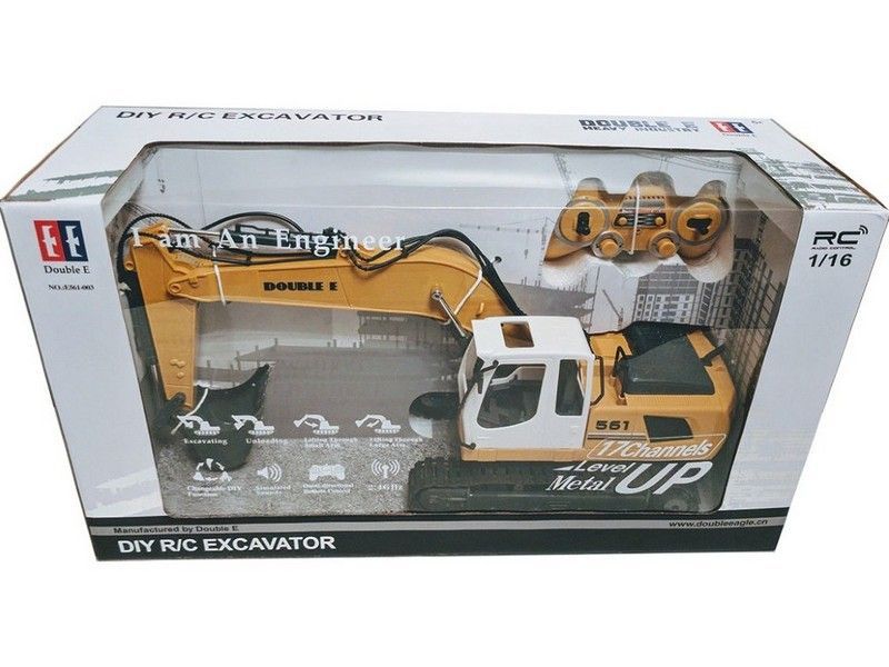 Экскаватор на радиоуправлении Double Eagle E561-003 — это копия настоящего экскаватора, отличный пример современной и функциональной строительной техники для детей.