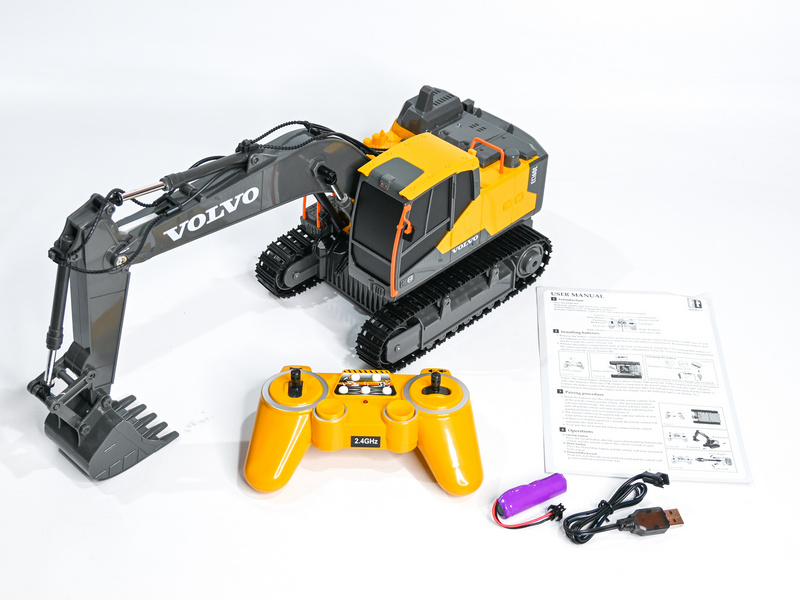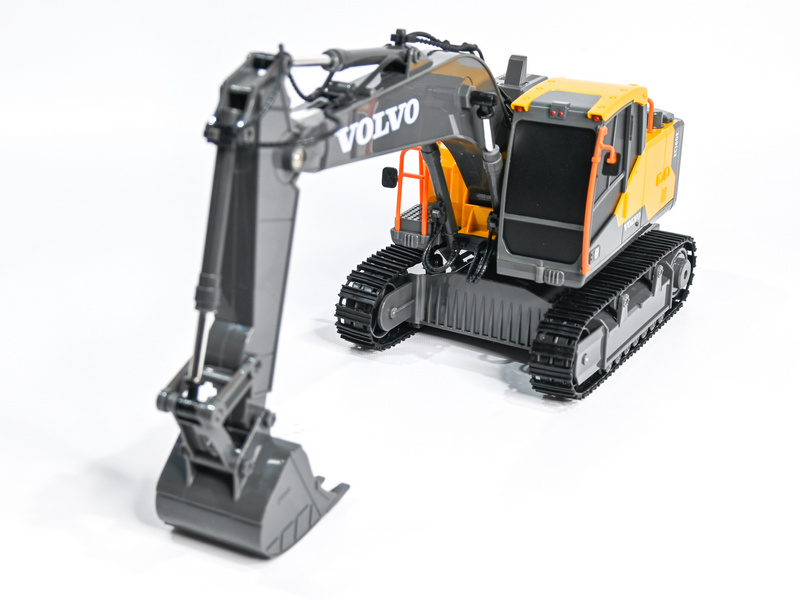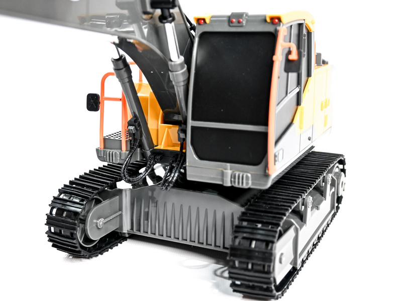 Радиоуправляемый экскаватор имеет типичную для массивных строительных машин конструкцию, а также классическую цветовую гамму - желтый корпус гармонирует с множеством контрастных черных деталей. Модель на резиновых гусеницах, которые отлично подходят для самых разных покрытий, а не только для полностью ровных.