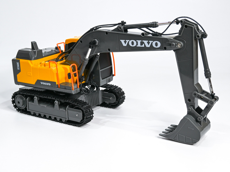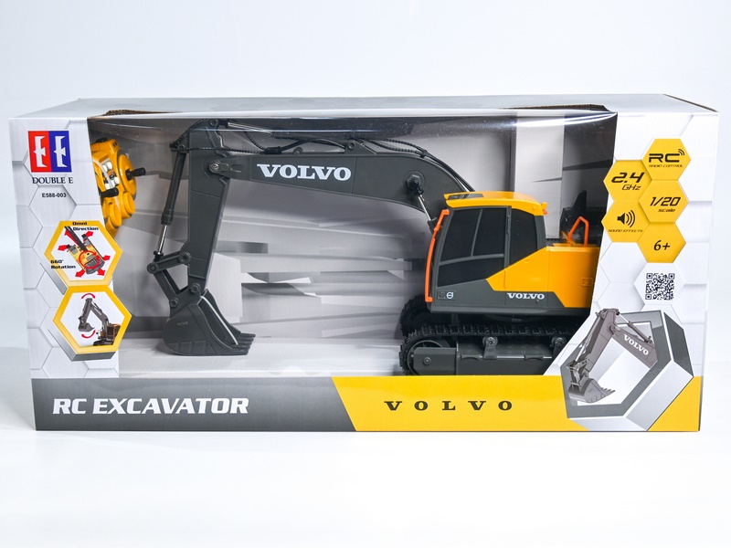 Радиоуправляемый экскаватор от Double Eagle в масштабе 1:20. Кабина вращается на 360 градусов. Машина имеет подвижный манипулятор с ковшом. Оснащена световыми и звуковыми эффектами.