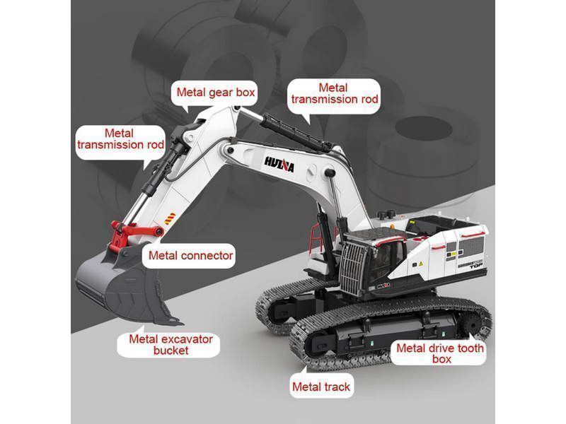Радиоуправляемый экскаватор HUI NA TOYS, белый 2.4G 22CH 1/14 RTR