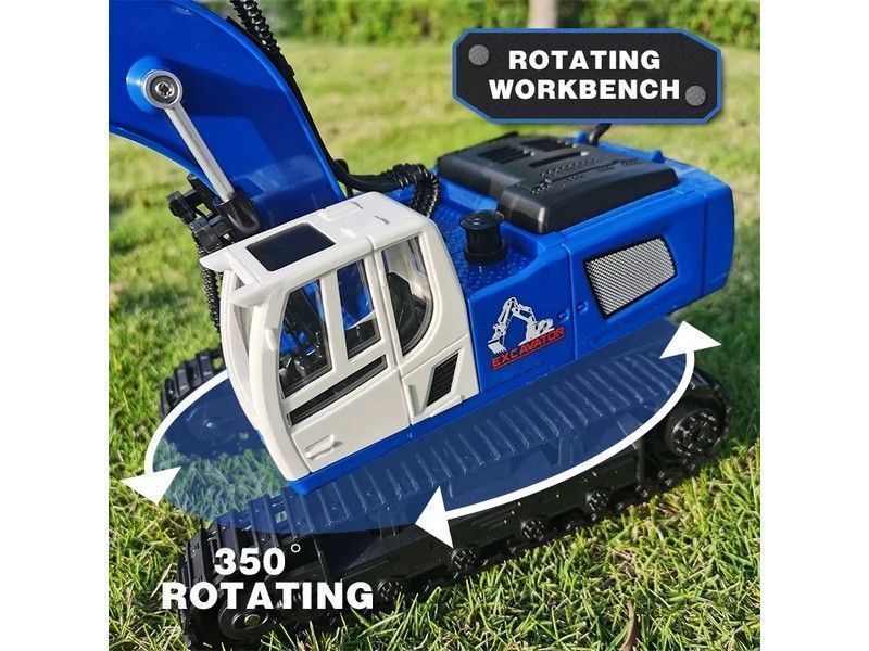 Радиоуправляемый экскаватор в масштабе 1:18 просто поражает воображение своим качеством исполнения и высокой степенью детализации. На фото его будет очень трудно отличить от настоящего. Мощный манипулятор с ковшом может копать различные типы грунта, а прочные резиновые гусеницы приспособлены к езде по любой местности. Экскаватор может разворачиваться на одном месте на 360 градусов в ограниченном пространстве. Кабина экскаватора поворачивается во все стороны как у настоящего, независимо от гусеничного шасси.