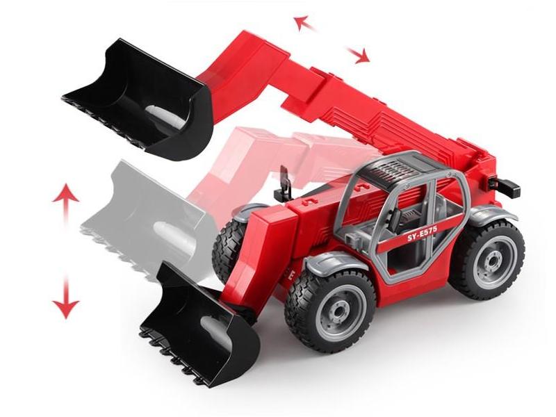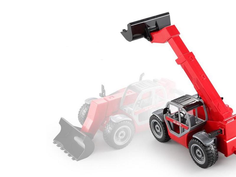 Принцип движения полностью повторяет настоящую технику. Ковш двигается вперёд и назад, перемещается вверх/вниз, может зачерпывать. Такая игрушка непременно станет центром любой игрушечной строительной площадки.
