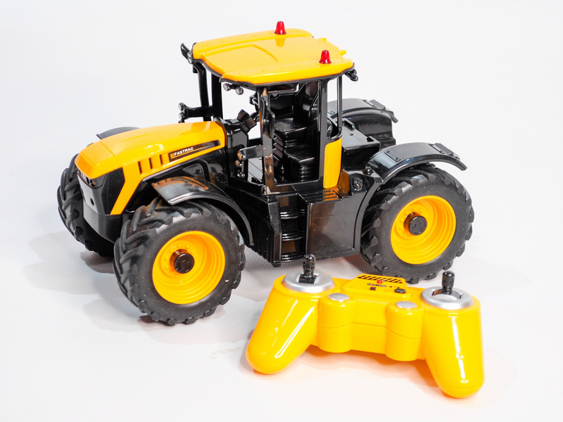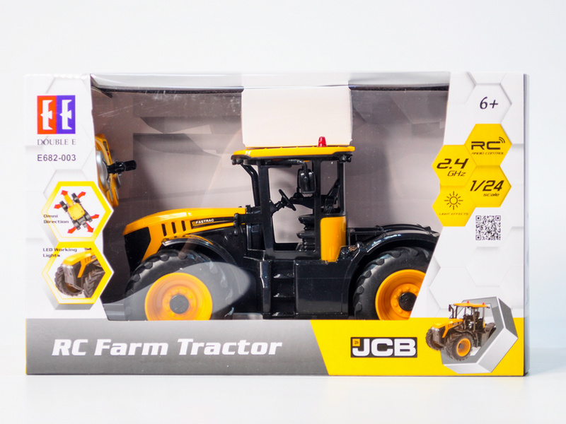Радиоуправляемый фермерский трактор Double Eagle JCB Fastrac 4220 в масштабе 1/24. Изготовлен из высококачественного и экологически чистого пластика ABS. Детали выполнены тщательно, чтобы создать впечатление настоящего автомобиля. К трактору можно присоединить прицеп, который при желании легко снять. Игра с трактором сопровождается реалистичными звуковыми эффектами. Трактор уже готов к запуску, осталось докупить 2 АА батарейки в пульт, зарядить аккумулятор и можно ехать.