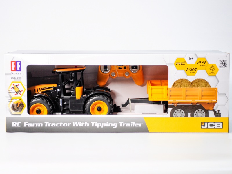 Радиоуправляемый фермерский трактор Double Eagle JCB Fastrac 4220 в масштабе 1/24. Изготовлен из высококачественного и экологически чистого пластика ABS. Детали выполнены тщательно, чтобы создать впечатление настоящего автомобиля. Прицеп съемный, передние фары светятся. Игра с трактором сопровождается реалистичными звуковыми эффектами. Прицеп при желании легко снять. Трактор уже готов к запуску, осталось докупить 2 АА батарейки в пульт, зарядить аккумулятор и можно ехать.