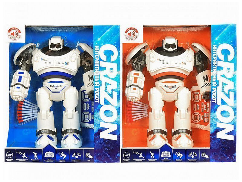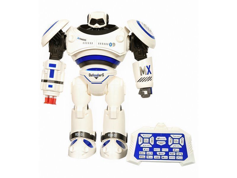 Этого робота можно по-настоящему считать боевым. Внушительный внешний вид заставит врагов бежать с поле боя. Но те, которые не испугаются, будут повержены ракетами, ведь робот может держать их сразу 5 штук. Такому роботу ничего не страшно, он может ходить, стрелять ракетами, поворачиваться, говорить, скользить по поверхности и даже танцевать. Робот оснащен светодиодной подсветкой и звуковыми эффектами.