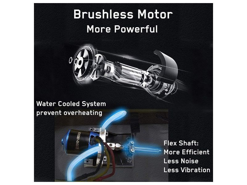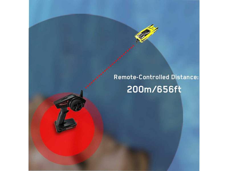 Катер оборудован современной электроникой: аппаратура управления с помехозащищенной частотой 2.4GHz. Система водяного охлаждения предотвращает перегрев двигателя. Катер замедляется при низком напряжении для защиты аккумулятора и лодки, напоминая вам о необходимости немедленно забрать ее обратно.