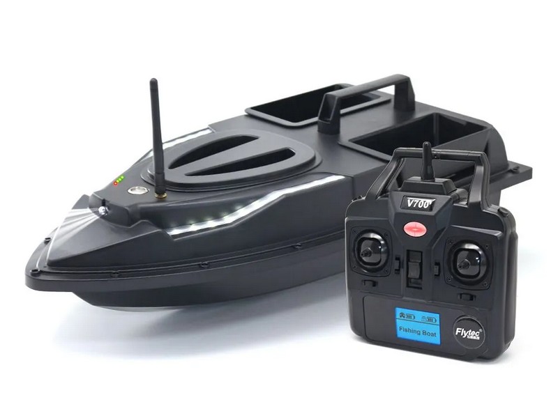 Радиоуправляемый катер для рыбалки Flytec V700 для завоза прикормки, приманки и рыболовных снастей. Катер оснащен 2 специальными лотками для сброса прикормки. Можно запускать для плавания в бассейнах, прудах, озерах, реках, заливах.