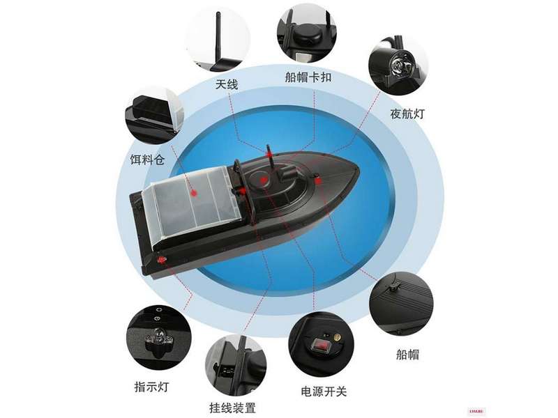 Радиоуправляемый катер – отличный помощник любого рыбака: катер поможет доставить прикормку, приманку и снасти для карповой ловли туда, куда необходимо. Также данная модель оборудована GPS-модулем, функциями автопилота и заднего хода. В днище корпуса встроен фонарь для приманки рыбы. Емкость отсека для приманки рассчитана на вес до 1,5 кг. Оригинальный пульт ДУ действует в радиусе до 300 м.