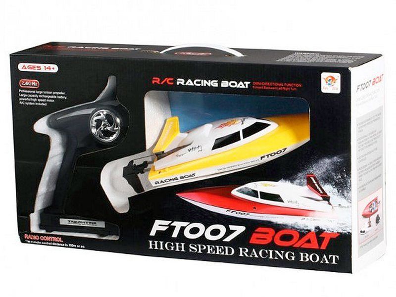 Катер на пульте радиоуправления Speed Vitality FT007 - самая быстрая и самая выносливая модель, полный ход набирается за считанные секунды. Данная модель обладает высокой маневренностью, моментально отзывается на команды с пульта радиоуправления, есть функция заднего хода. Надежная влагозащита бережет электромотор, поэтому можно не беспокоится за сохранность электронной начинки если катер перевернется. Еще одно важное преимущество перед другими моделями - продолжительное время автономной работы от одного полного заряда батареи. В комплекте поставляется профессиональный пульт управления пистолетного типа, с помощью которого можно осуществлять управление даже одной рукой! Пульт работает на частоте 2,4 GHz, что гарантирует качественный сигнал и полную защиту от помех. Радиус действия достигает 150 метров.