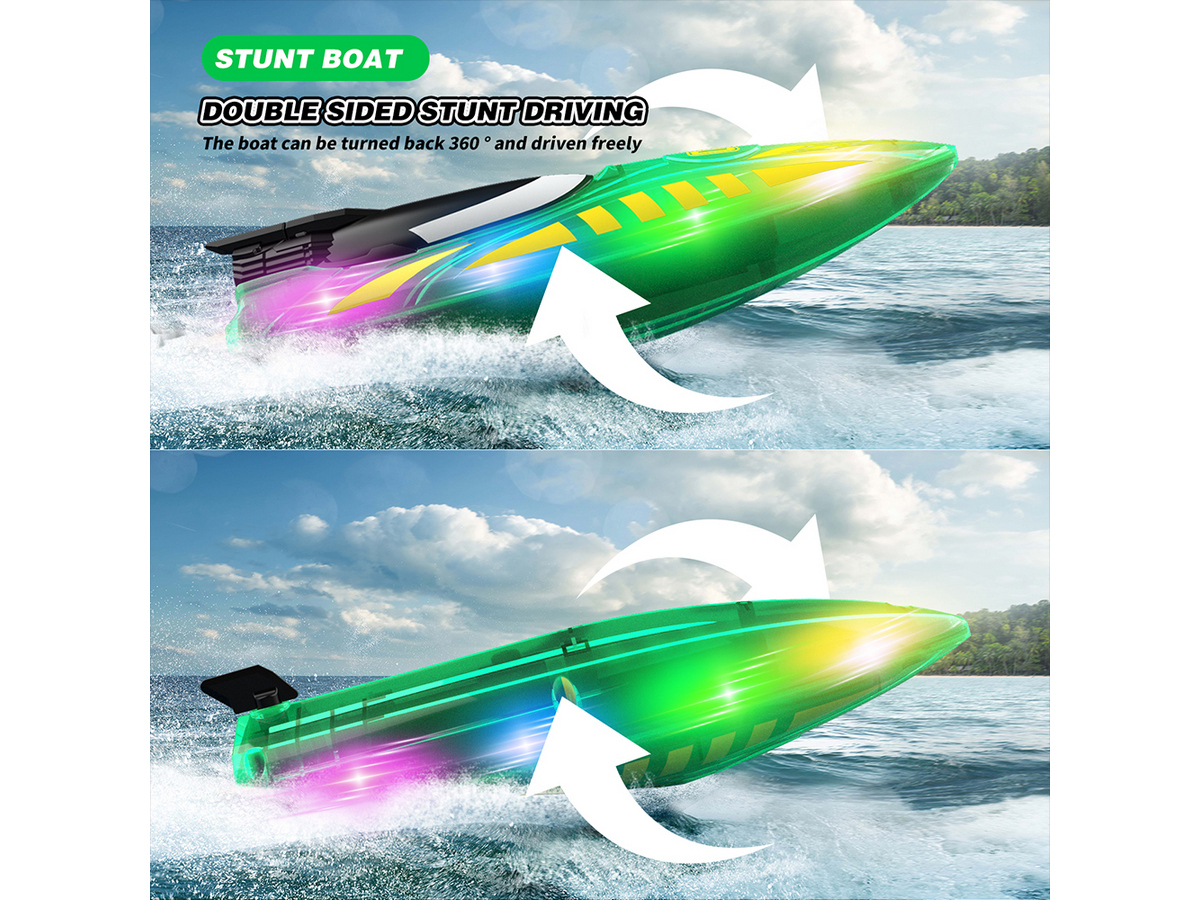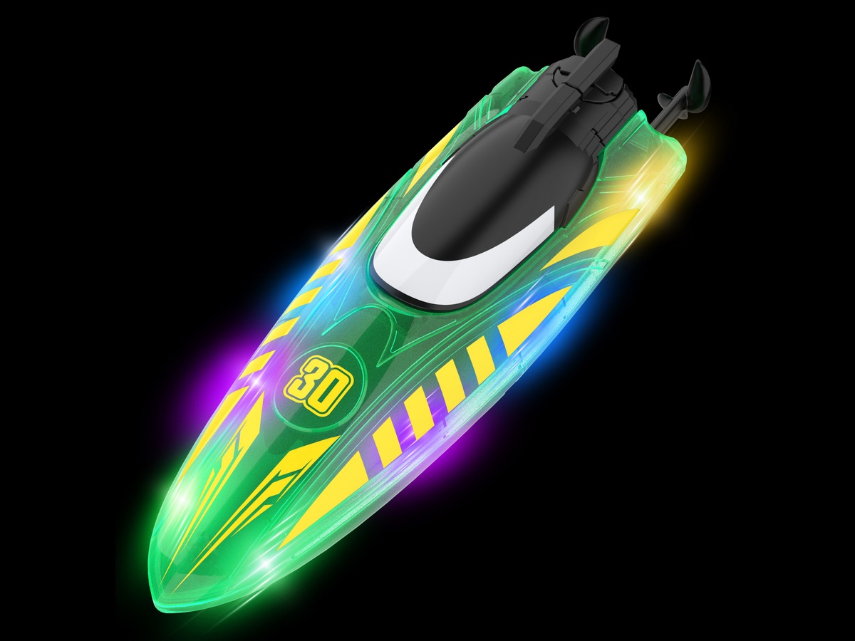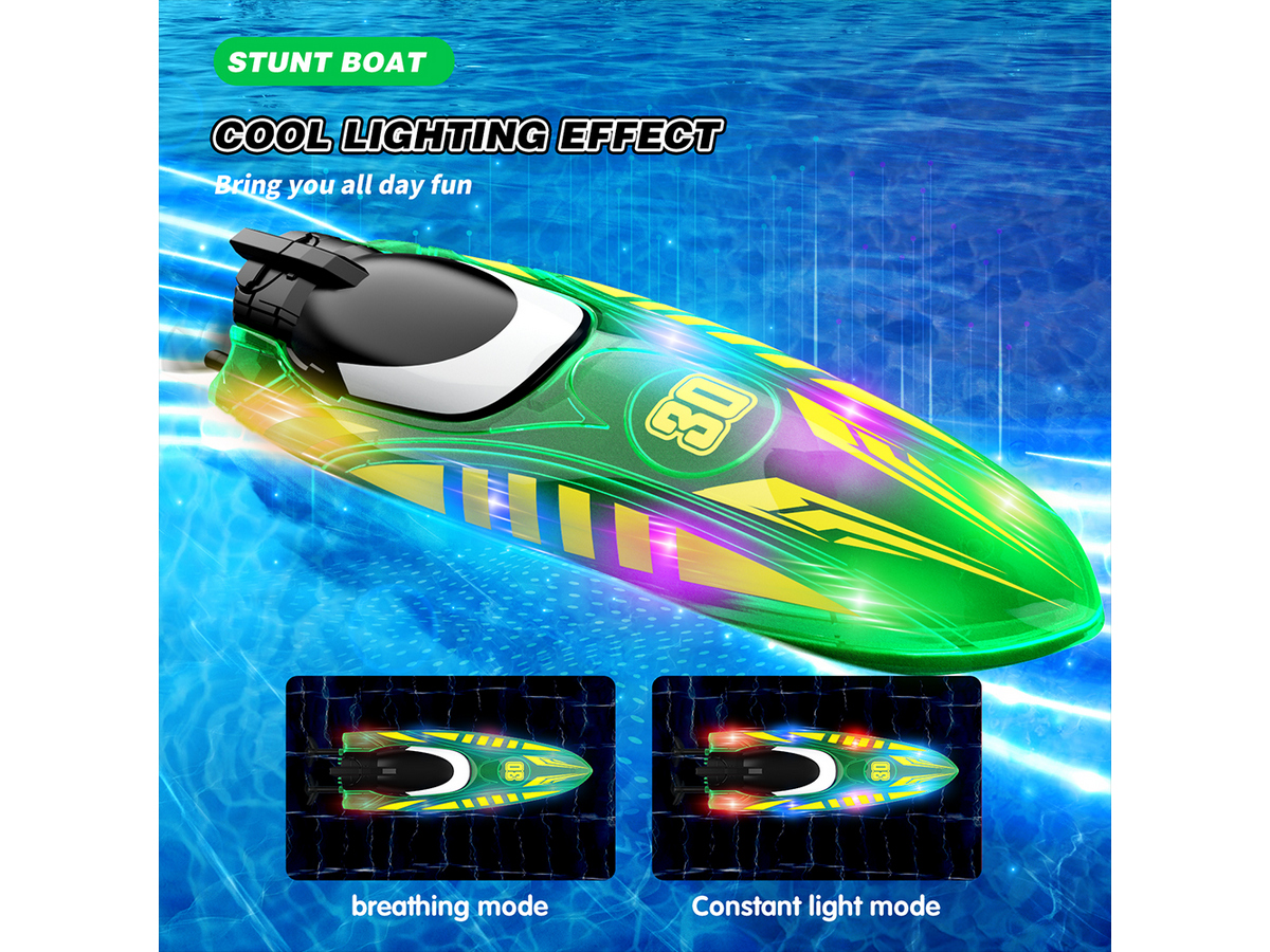 Световые эффекты: катер оснащен яркой LED-подсветкой с тремя режимами (дыхание, мигание и постоянный свет), что делает его заметным при ночных заплывах.