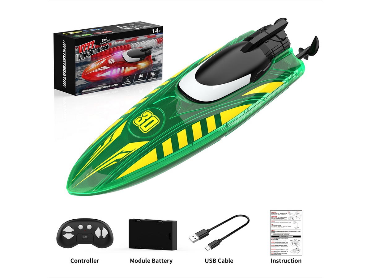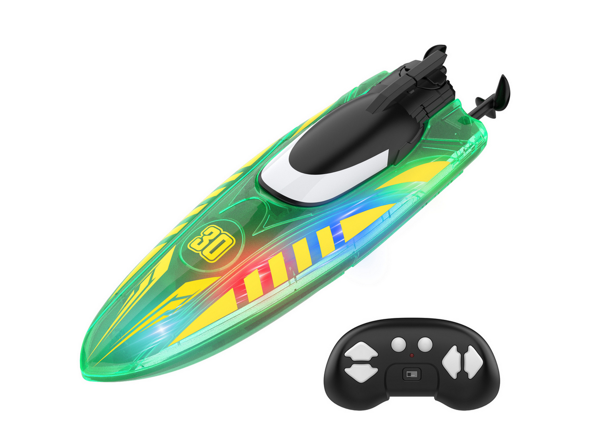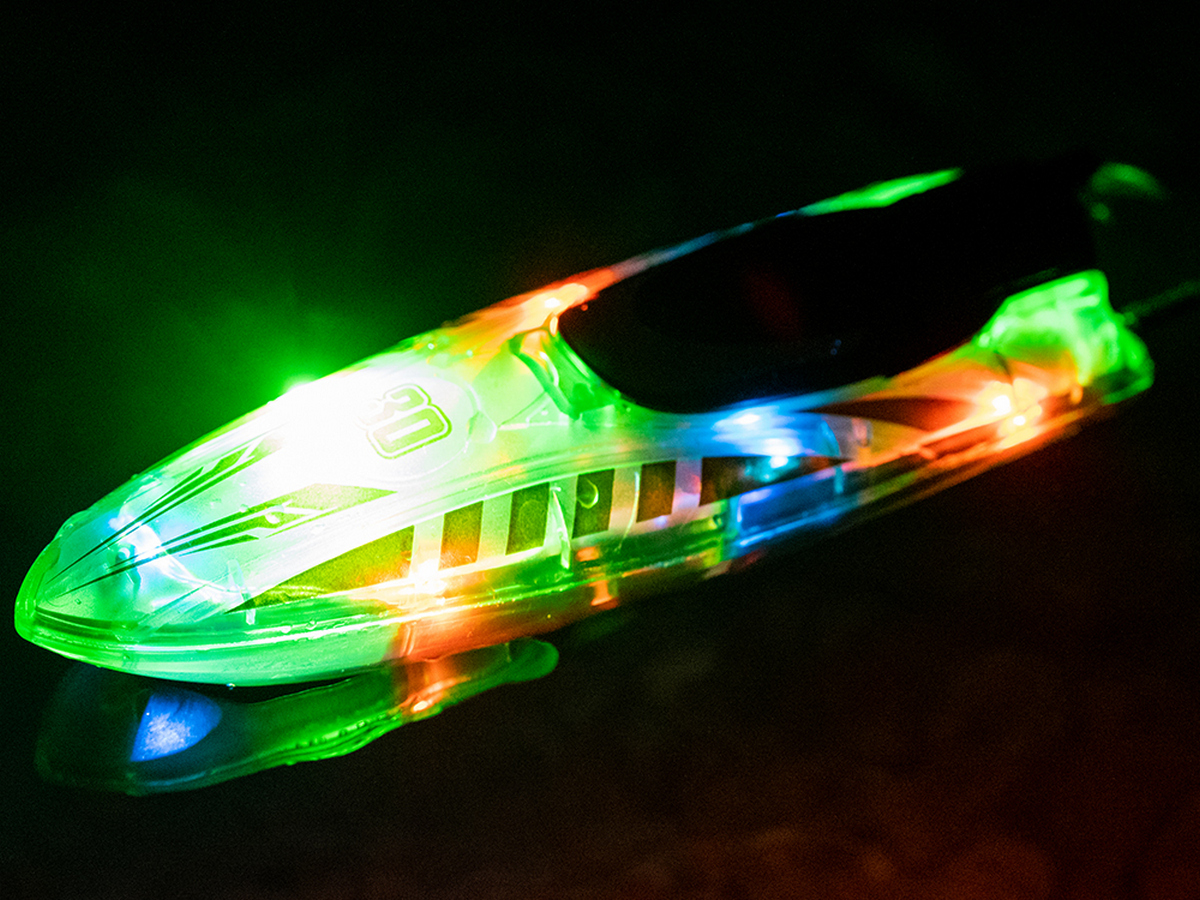 Световые эффекты: катер оснащен яркой LED-подсветкой с тремя режимами (дыхание, мигание и постоянный свет), что делает его заметным при ночных заплывах.