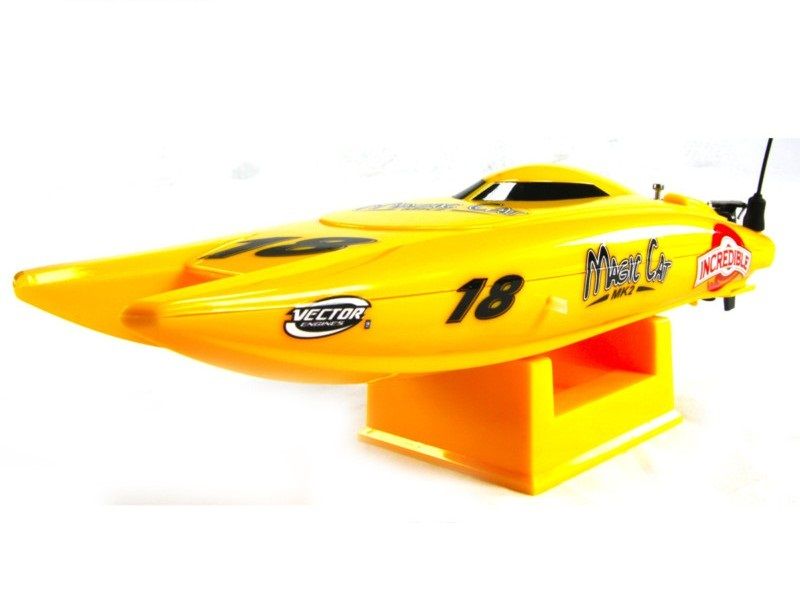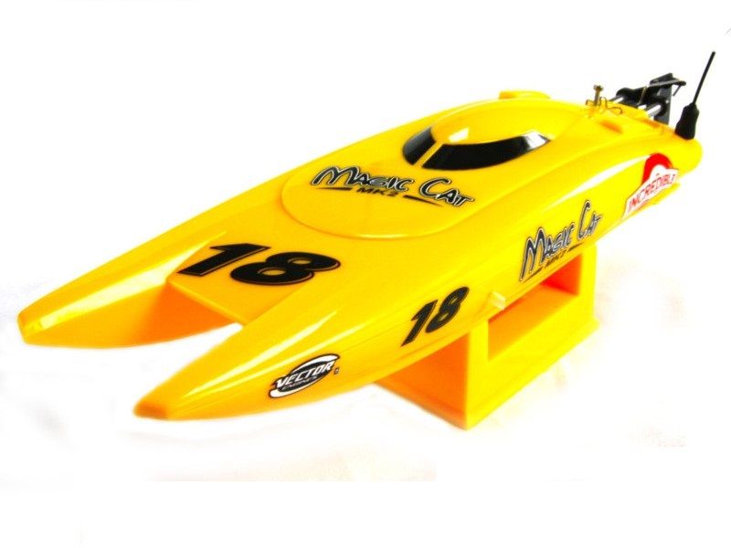 Полностью готовая минимодель радиоуправляемого катера Joysway Magic cat MK2. Катер комплектуется всем необходимым для запуска, включая аппаратуру управления на 2.4ГГц.