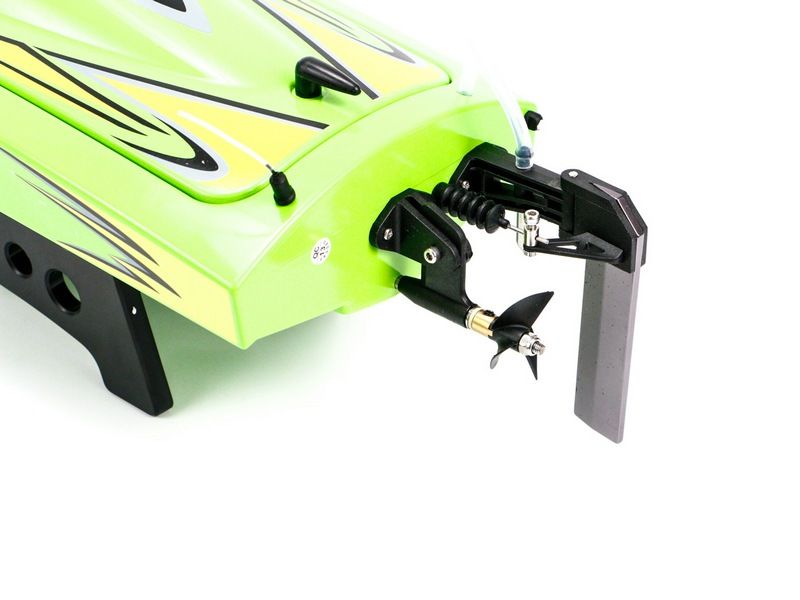 Недорогой,но мощный коллекторный двигатель обеспечивает новому катеру достойные скоростные и динамические характеристики, ведь каждый элемент конструкции оптимизирован для выполнения этой задачи! 3S Li-PO аккумулятор позволяет получить от мотора максимальную мощность, передаваемую на трёхлопастной гребной винт. Корпус изготовлен из ABC пластика, известного своим малым весом, что обеспечивает отличные разгонные характеристики.
