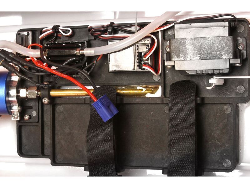 - Модель оснащена бесколлекторным двигателем 2000 Kv с водяным охлаждением и регулятором скорости 30…