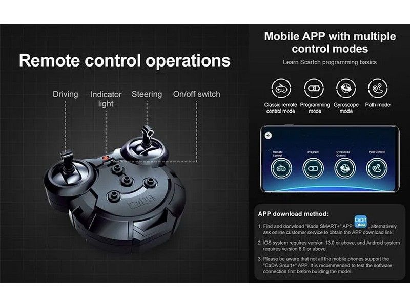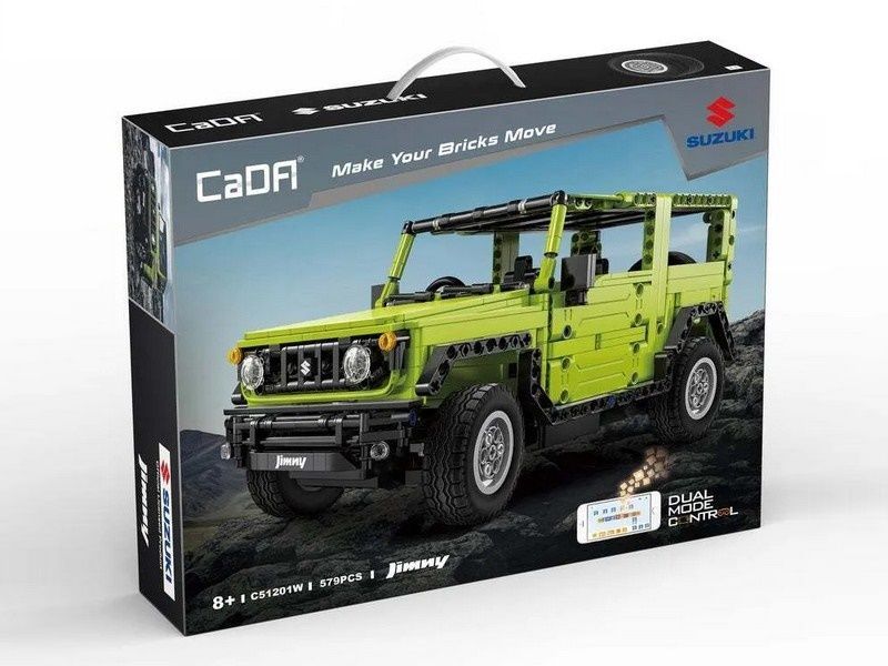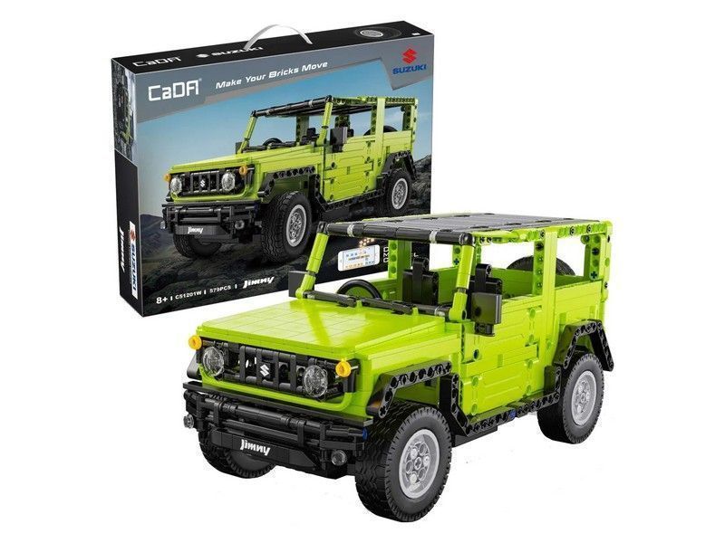 Радиоуправляемый конструктор от CADA представляет собой набор для постройки автомобиля SUZUKI JIMNY из 579 деталей в масштабе 1/12. Машина имеет детально проработанный внешний вид и внутренний интерьер - есть водительское и пассажирское сиденья, руль, запасное колесо и вместительный багажник. Двери открываются. Имеется светодиодная подсветка фар.