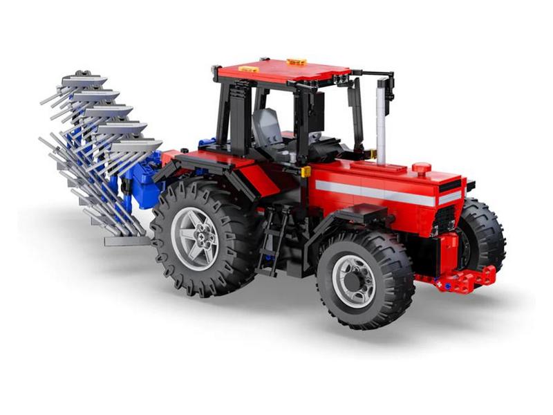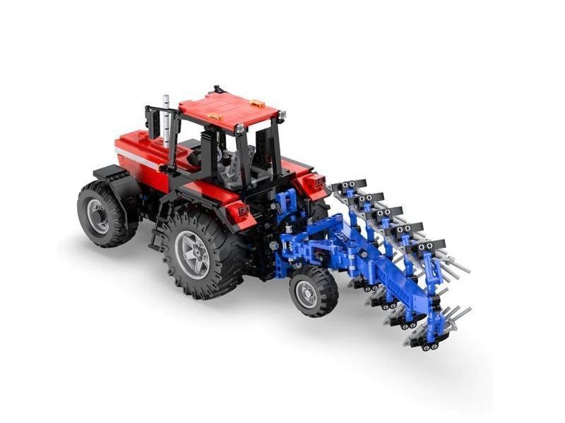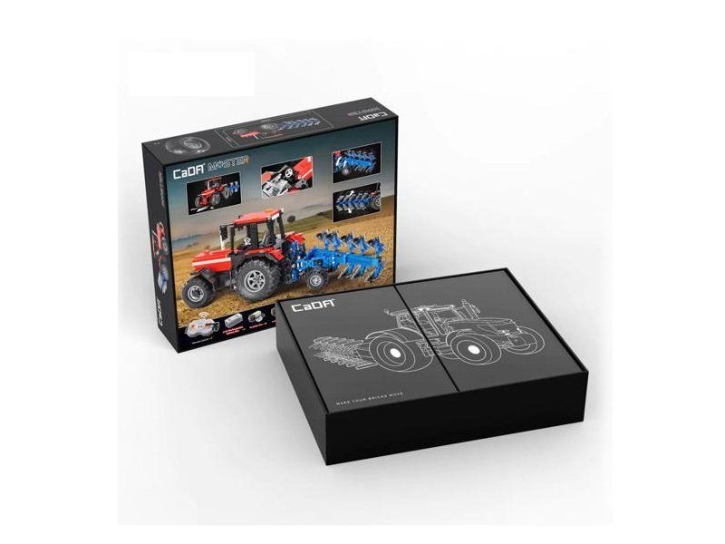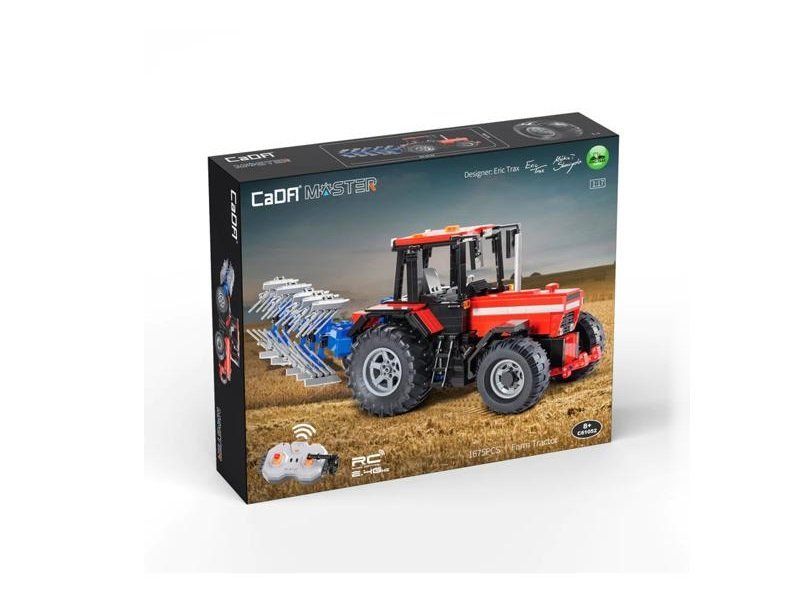 Радиоуправляемый конструктор от CADA представляет собой набор для постройки сельскохозяйственного трактора из 1675 деталей в масштабе 1/17. Трактор может ездить во всех направлениях. Модель поражает степенью детализации: у трактора есть проработанная до мелочей кабина, ступеньки, зеркала заднего вида, выхлопная труба. Ступеньки поднимаются и опускаются, зеркала заднего вида поворачиваются. Капот можно открыть. В комплекте с трактором плуг, который можно отцепить от машины. Рама плуга поднимается и опускается, вращается вокруг своей оси. Все функции управляются с пульта.