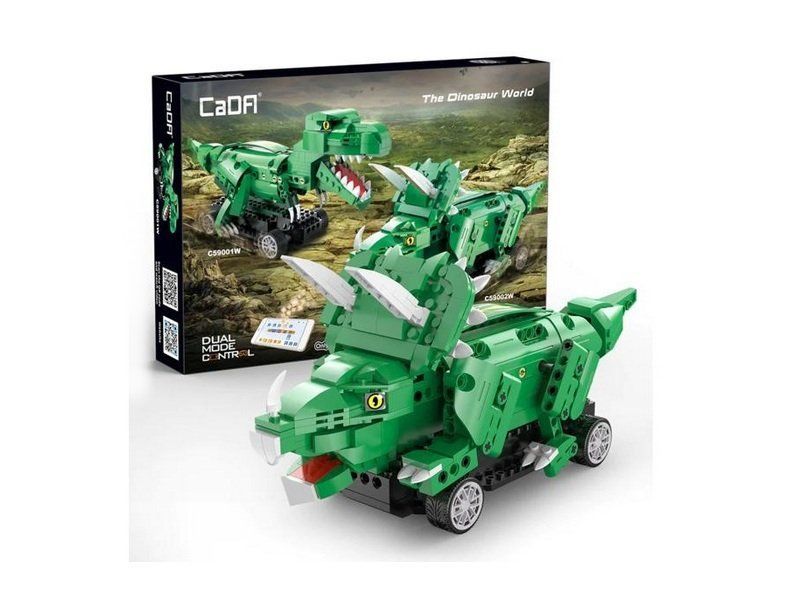 Радиоуправляемый конструктор "Мир динозавров" от CADA представляет собой набор для сборки Трицератопса из 317 деталей. Лапы динозавра двигаются при движении, а внушительный внешний вид никого не оставит равнодушным. Управлять моделью можно как при помощи пульта управления, так и приложения на телефоне, при этом можно выбрать один из нескольких вариантов управления.