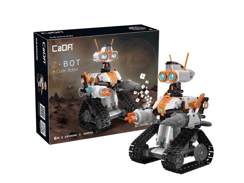 Радиоуправляемый конструктор от CADA представляет собой набор для постройки робота Z.BOT из 462 деталей. Голова поворачивается, манипуляторы вращаются. Управление роботом осуществляется при помощи пульта управления или приложения.