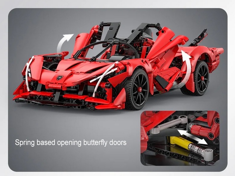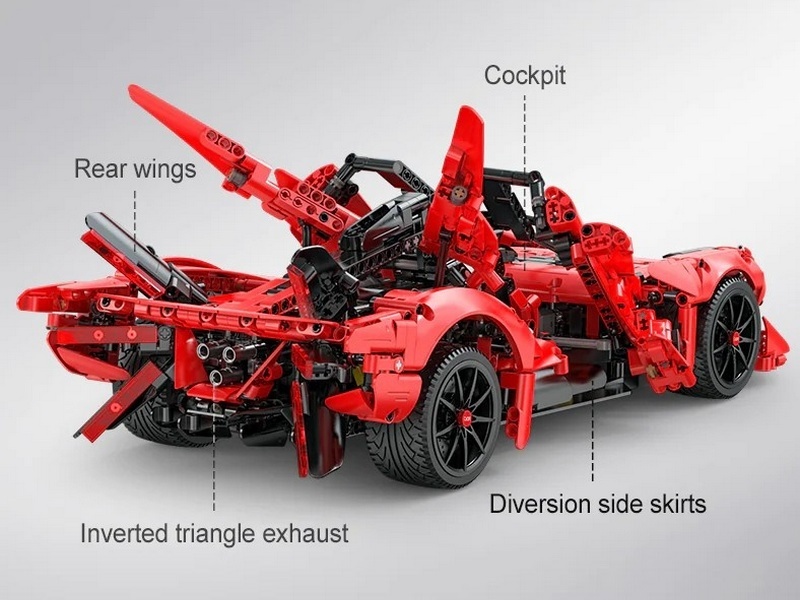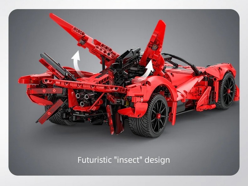 Конструктор от CADA представляет собой набор для постройки спортивного автомобиля APE Supercar из 1823 деталей в масштабе 1/10. Автомобиль обладает высокой степенью детализации. Широкий аэродинамический воздухозаборник и двери-бабочки создают привлекательный дизайн. Заднее антикрыло и форма из шести частей придают футуристический внешний вид. Люк двигателя можно открыть с обеих сторон, как чехол на крыле насекомого.