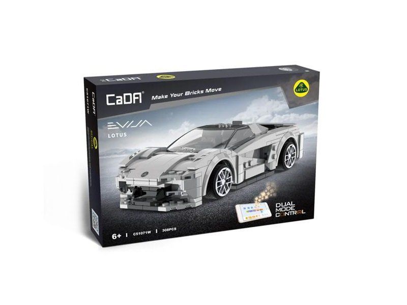 Радиоуправляемый конструктор от CADA представляет собой набор для постройки спортивного автомобиля Lotus Evija из 308 деталей. Модель создана со всем вниманием к деталям: на капоте есть логотип марки автомобилей Lotus, внутри - детализованный интерьер с сиденьями, панелью управления и рулем. Стильный дизайн кузова полностью повторяет оригинал, а спортивные шины обеспечивают наилучшее сцепление. Машинкой можно управлять как при помощи пульта управления, так и приложения на телефоне, также можно выбрать один из нескольких вариантов управления.