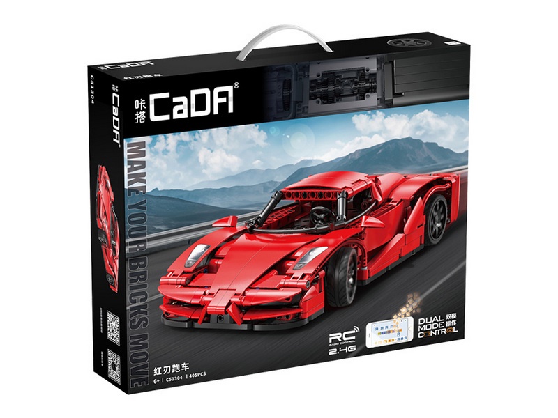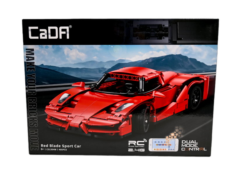 Конструктор от CADA для постройки спортивного автомобиля Red Blade в масштабе 1/14. Автомобиль обладает высокой степенью детализации и стильным дизайном. Конструкция прочная и не развалится при столкновении. Имеется два режима управления: пульт дистанционного управления 2,4G + приложение Bluetooth и способен двигаться вперед/назад/поворот влево/вправо.