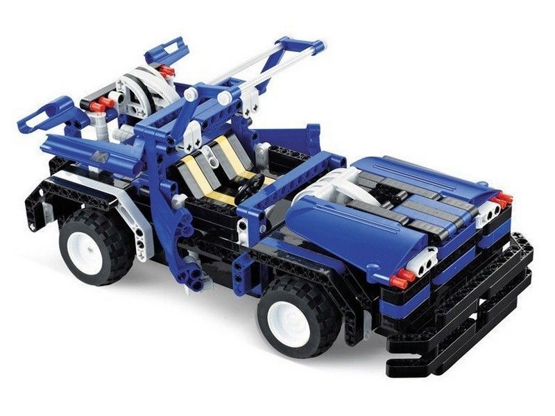 Автомобиль может двигаться во всех направлениях, управляемый с пульта. Наличие подвижных элементов в собранных конструкциях сделает игру более интересной. Мягкие резиновые колеса пройдут уверенно заданный маршрут. Набор прекрасно подходит для сюжетно-ролевых игр.