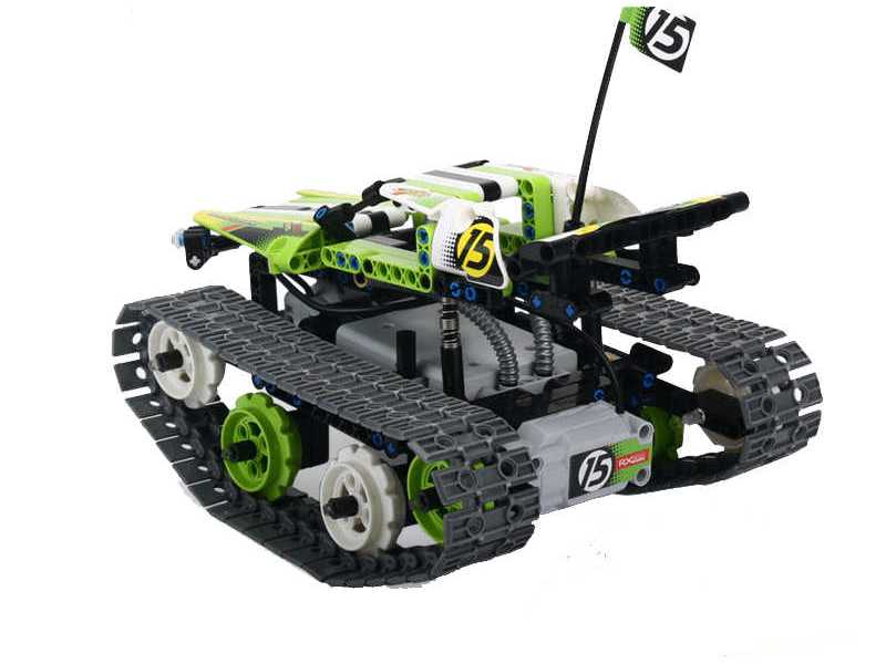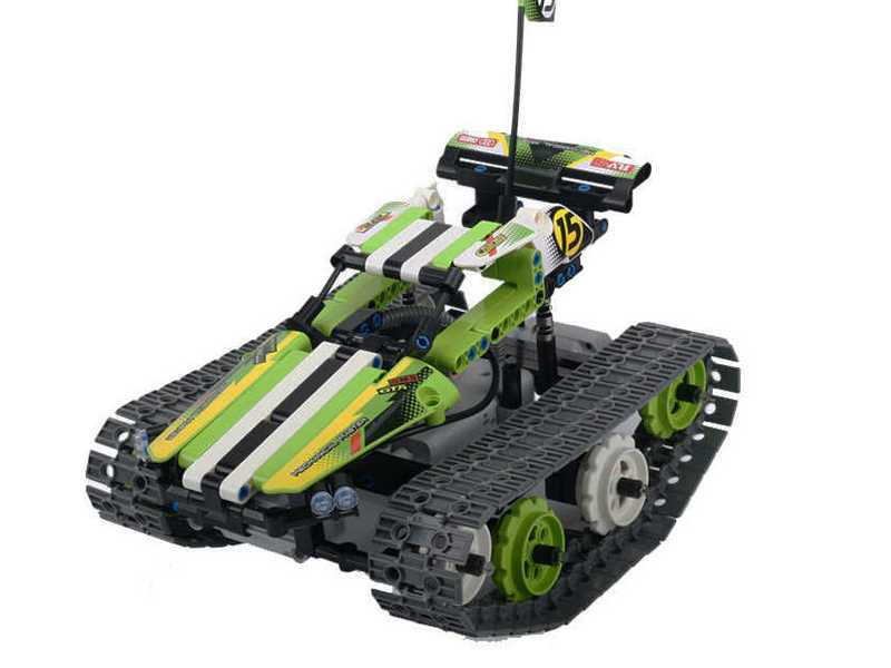 Вездеход может передвигаться во всех направлениях, управляемый с пульта, а гусеницы помогут преодолеть небольшие препятствия.