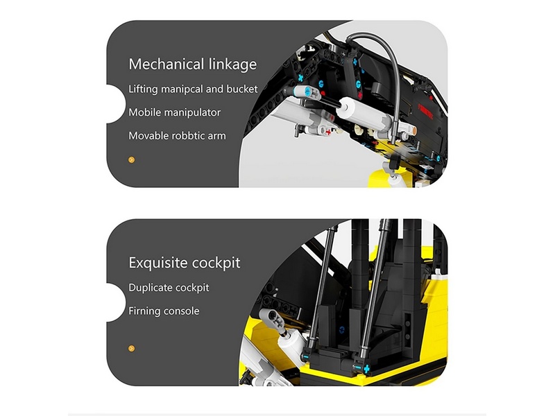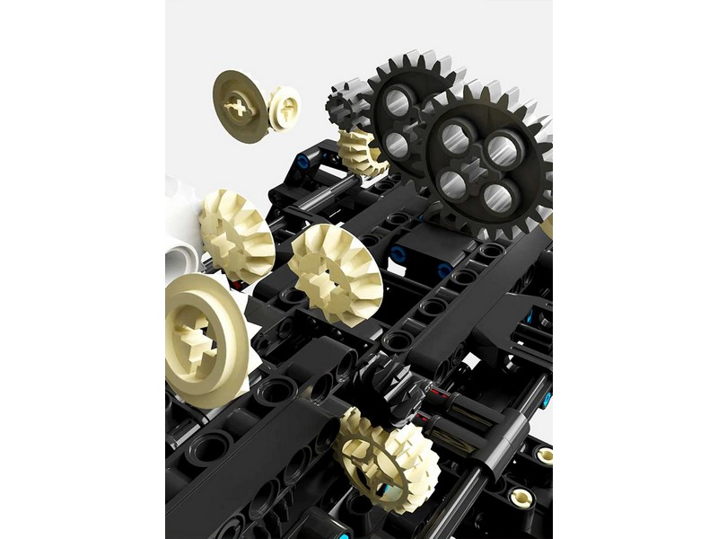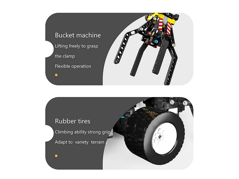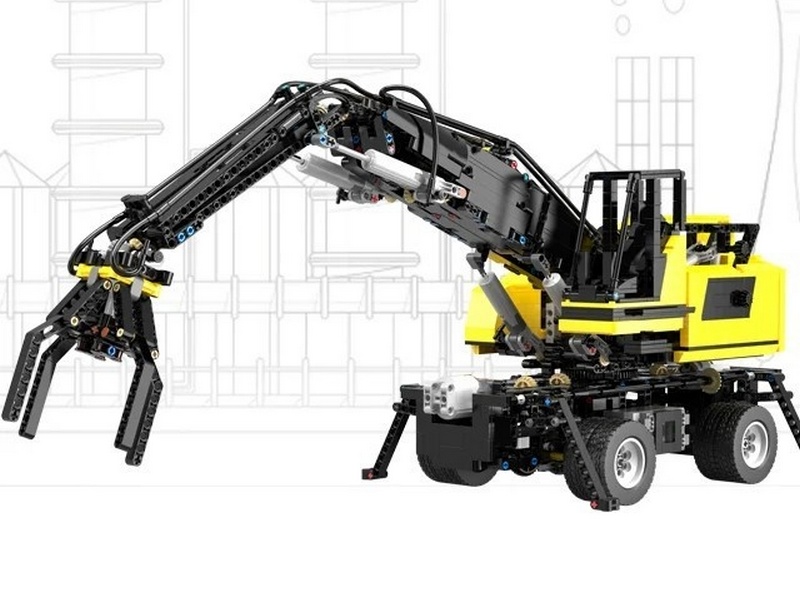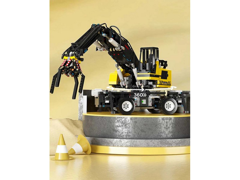 Радиоуправляемый конструктор представляет собой набор для постройки лесопогрузчика из 2068 деталей от RCM. Модель повторяет все функции реальной машины - подвижный манипулятор способен поднимать предметы, кабина оператора вращается на 360 градусов, а резиновые покрышки обеспечивают наилучшее сцепление.