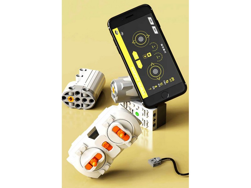 В комплекте набор электроники (мотор, серво, аккумулятор), который делает Ваш конструктор радиоуправляемым.