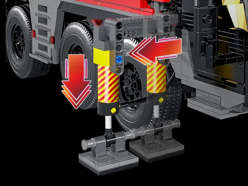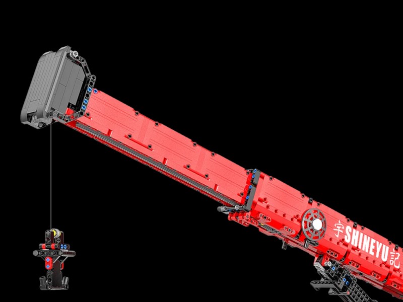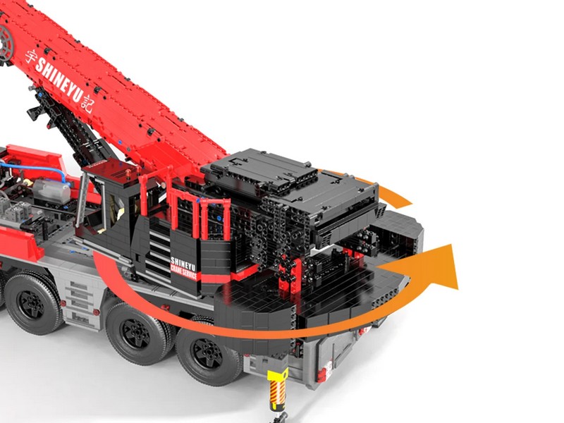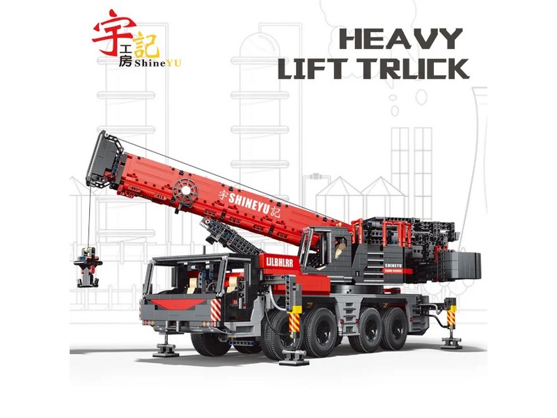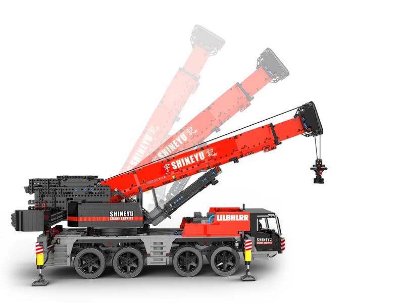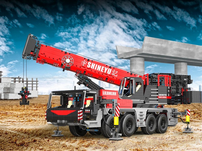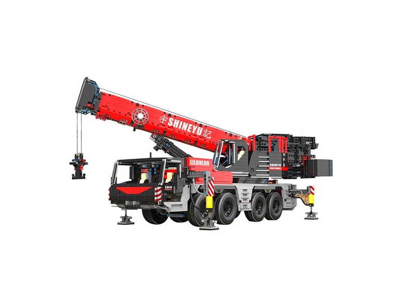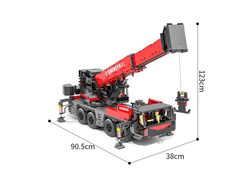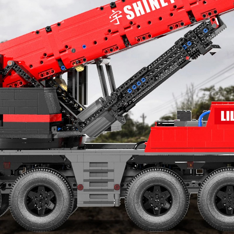 Радиоуправляемый конструктор представляет собой набор для постройки тяжёлого крана из 4885 деталей от RCM. Имеет высокую степень детализации и внушительные размеры. Оснащен электрическими гибридными опорными рамами и вездеходными шинами. Подвижная стрела имеет телескопическую конструкцию, вращается, складывается, выдвигается. Пакеты с деталями пронумерованы для легкой сортировки и сборки.