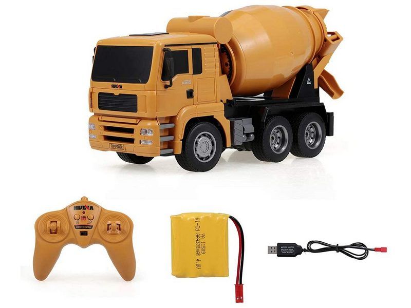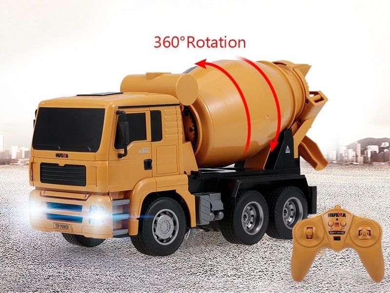 Полностью рабочая и функциональная радиоуправляемая бетономешалка. Этот миксер может вращать барабан по часовой стрелке или против часовой стрелки, вы можете даже наполнять барабан рисом или бобами, чтобы имитировать реальный микс и процесс перемешивания.