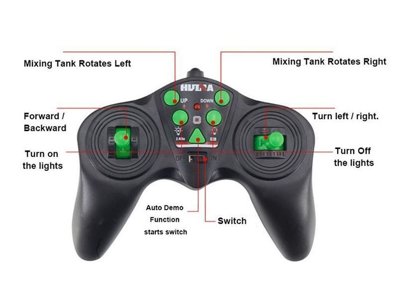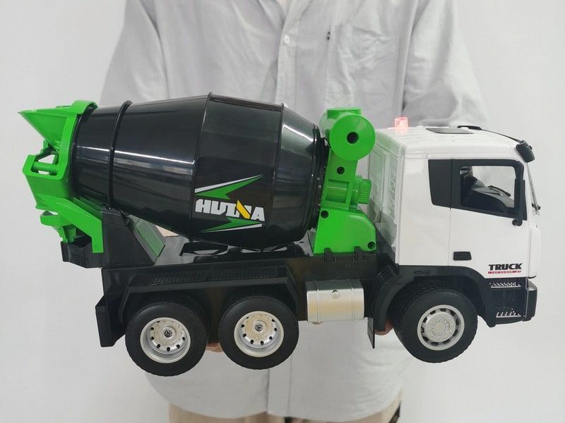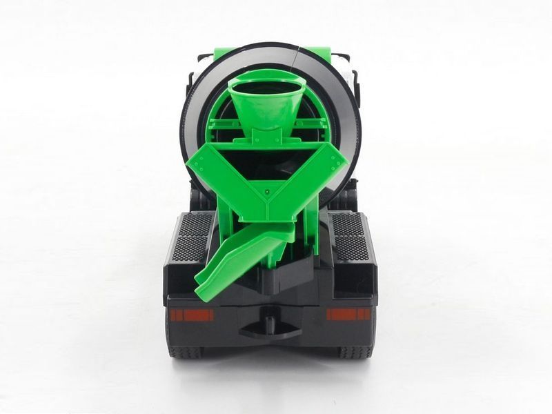 Полностью рабочая и функциональная радиоуправляемая бетономешалка. Может вращать барабан по часовой стрелке или против часовой стрелки, можно напонять барабан, чтобы имитировать реальный процесс перемешивания.
