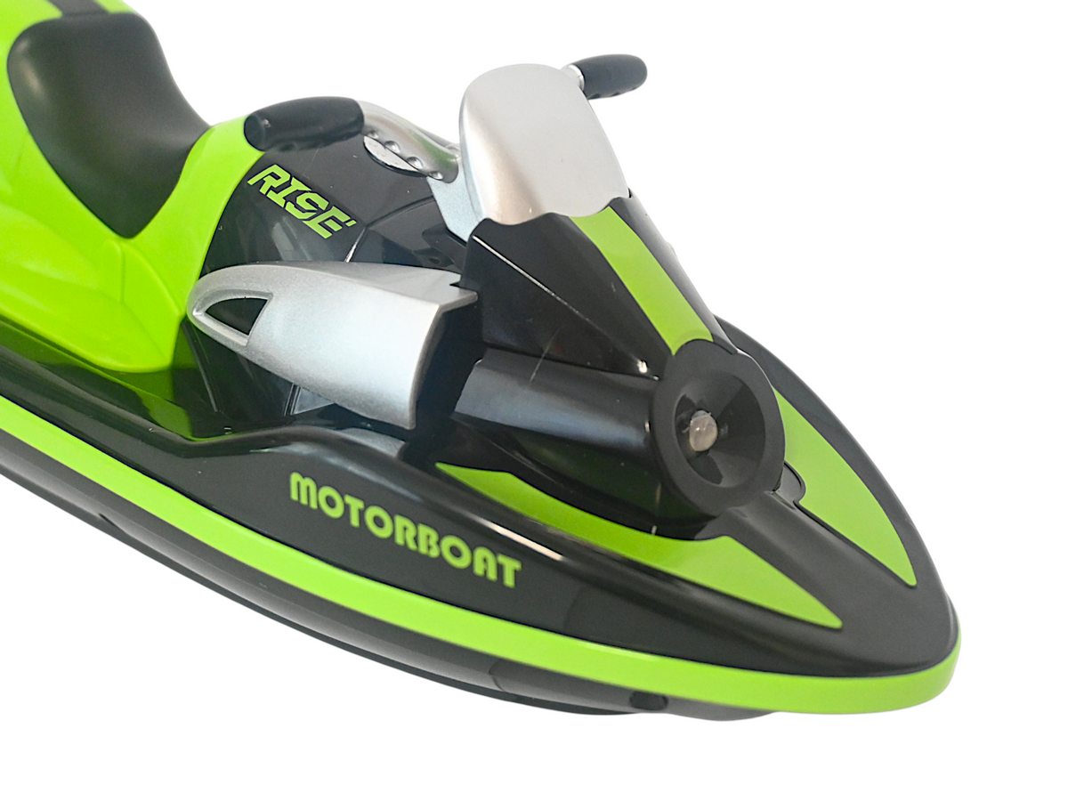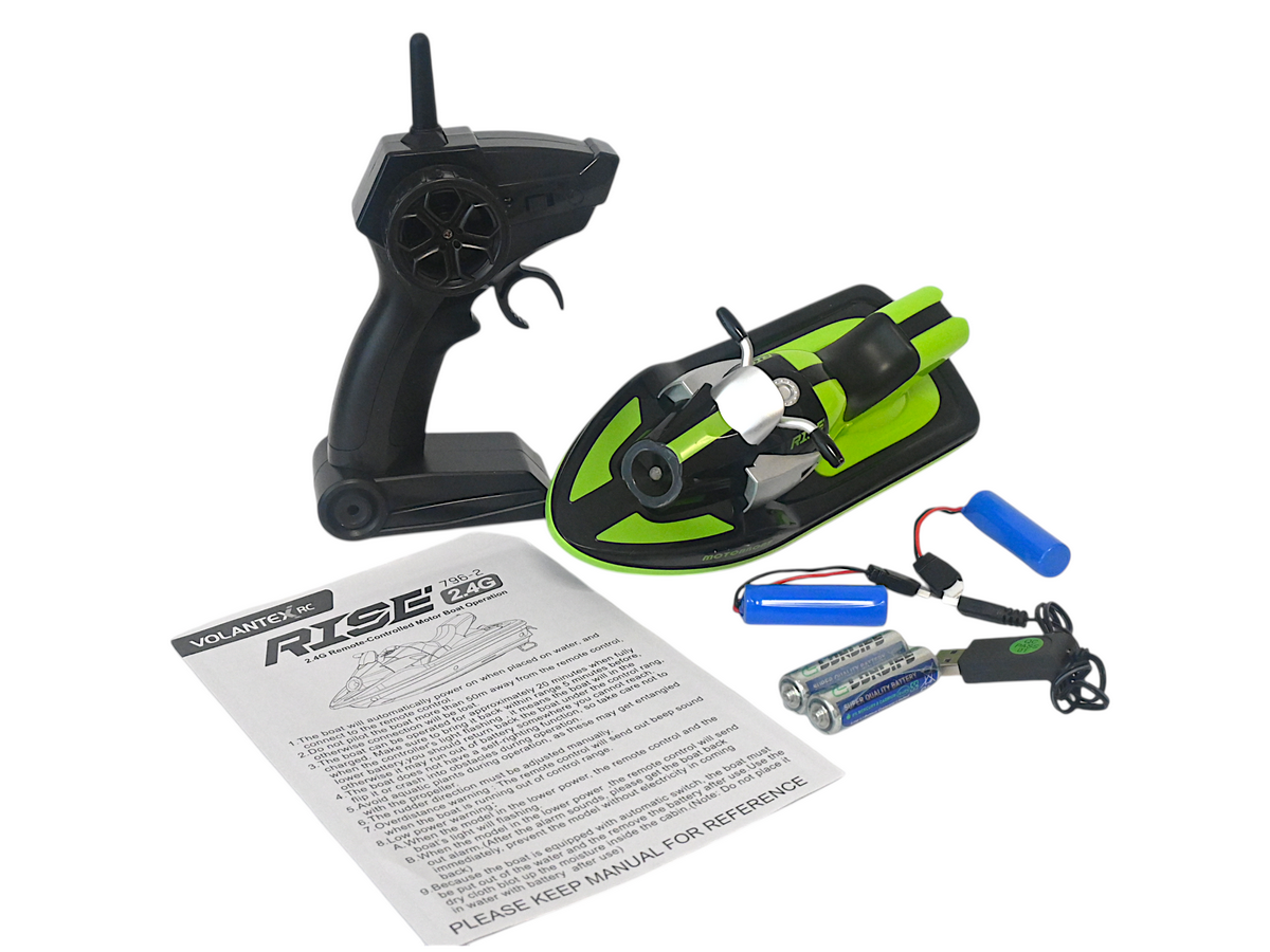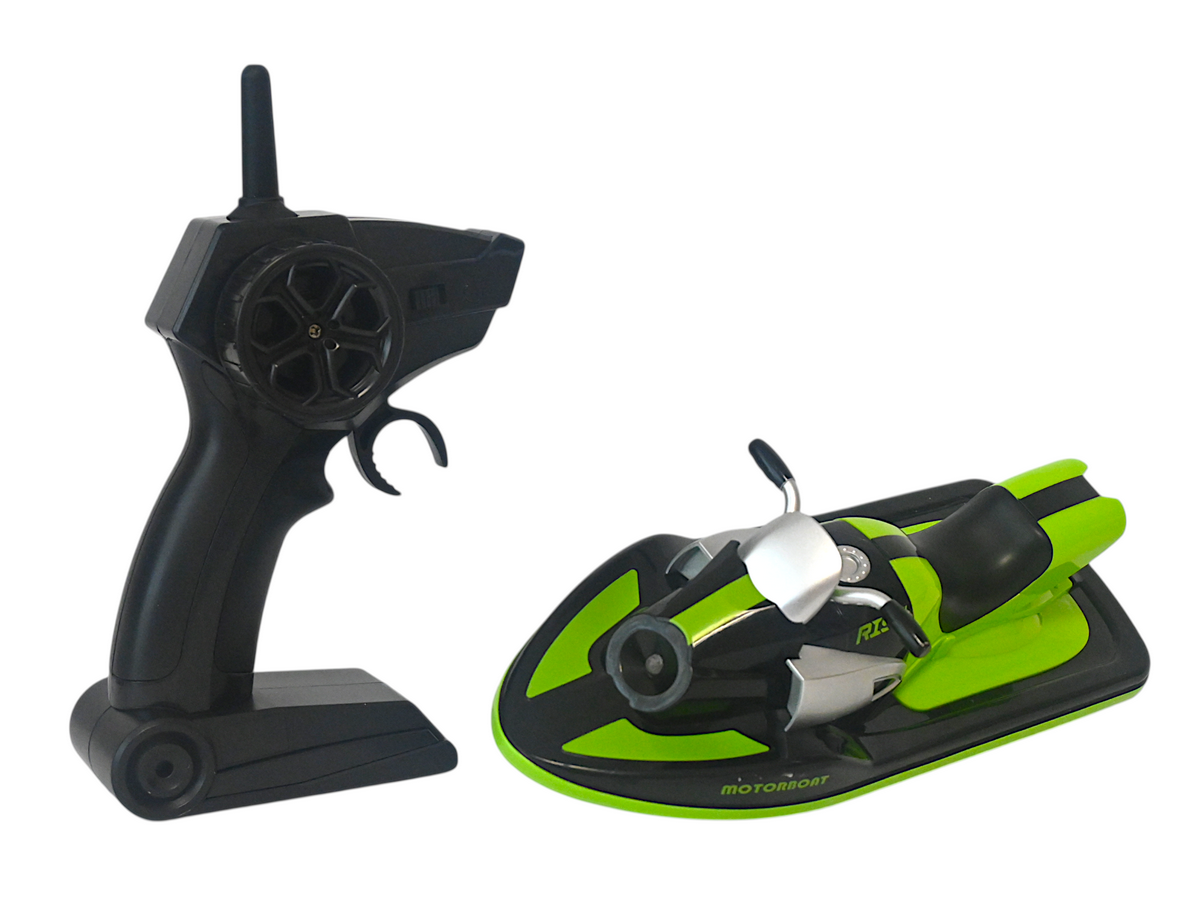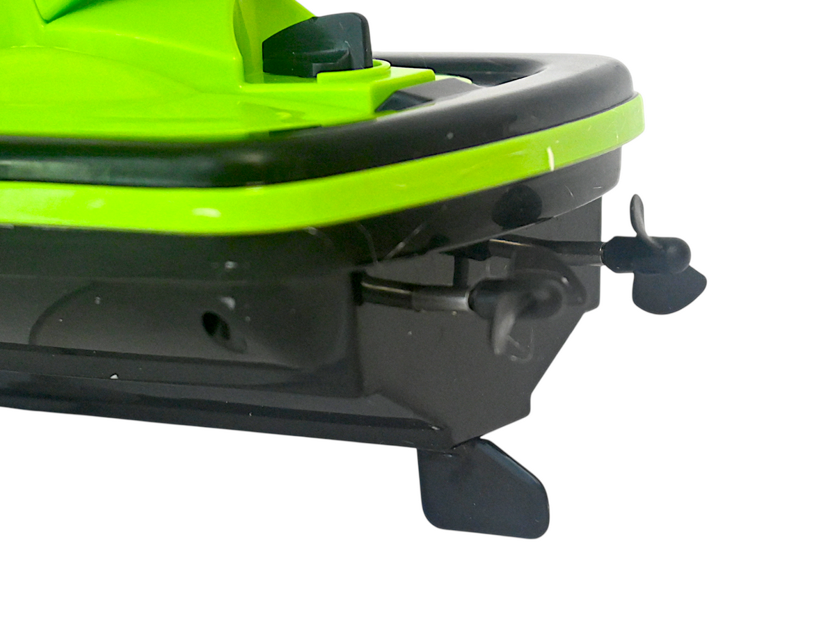 Имеет 4 направления движения (вперед, назад, влево, вправо) и легко управляется с помощью пульта пистолетного типа. При низком заряде батареи катер сигнализирует красным светодиодным сигналом, что напоминает вам о необходимости отправить его обратно.