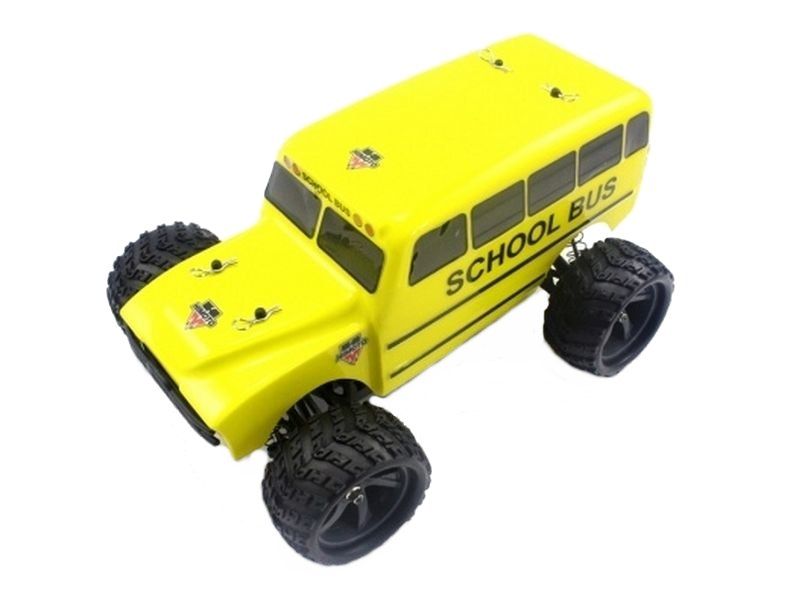 Бесколлекторная версия монстра Himoto School Bus E18BSL. Двигатель такой конструкции дает автомодели потрясающую возможность развивать большую скорость. Этот внедорожник очень маневренный и легкий. Производитель предусмотрел защиту шарниров равных угловых скоростей на передних колёсах и защиту основной шестерни и установлен влагозащищенный регулятор скорости.
