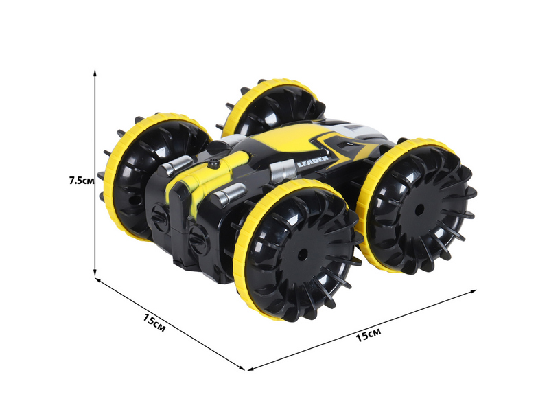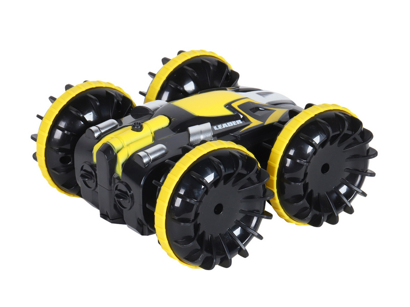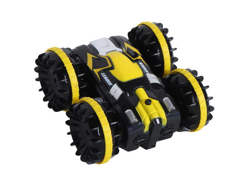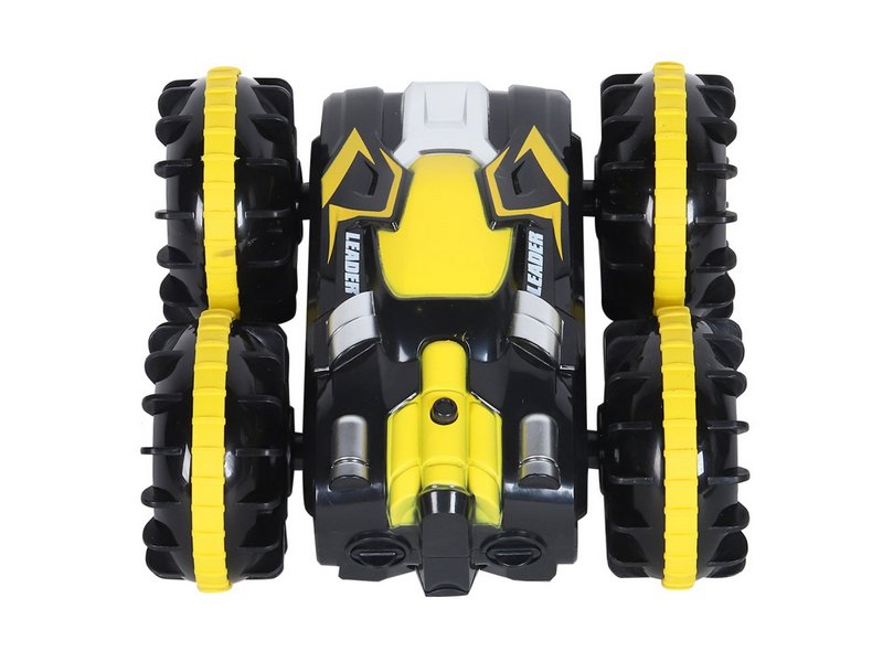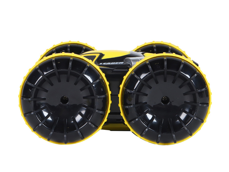 При помощи пульта машина-амфибия выполняет движения вперёд, назад, поворачивает влево, вправо, разворачивается на 360 градусов. Если машинка не может переехать препятствие, то она просто переворачивается и продолжает движение в другом направлении.