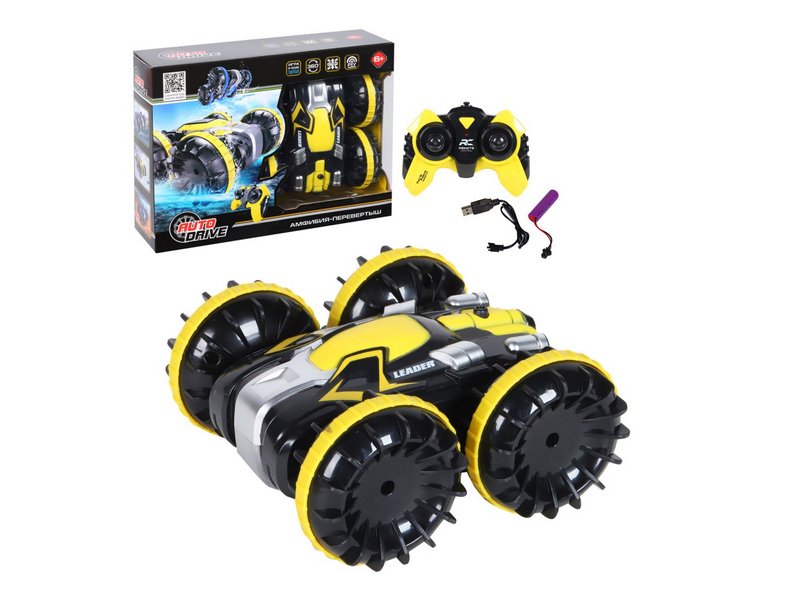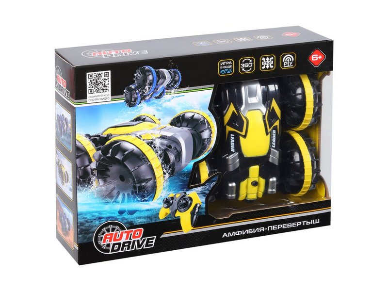 Радиоуправляемый перевертыш-амфибия от AUTODRIVE подходит как для игр в помещении, так и на улице. Но главное – машинка прекрасно ездит по воде, что приведёт детей в особенный восторг! Амфибия оснащена влагозащищенной электроникой, что позволяет безбоязненно эксплуатировать её в лужах и на мелководье. Корпус машинки выполнен из ударопрочного пластика, который отлично защищает и внутренние электронные компоненты, и сам корпус при столкновении с препятствиями.