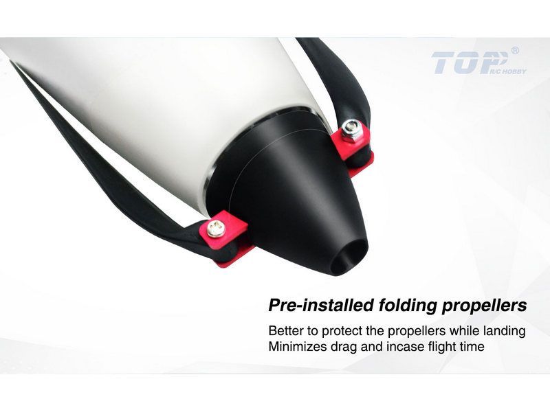 Двугранная конструкция хвостового и верхнего крыла увеличивают стабильность в полете. Это дает возможность управлять планером и продвинутым пилотам, и новичкам. Складной пропеллер минимизирует лобовое сопротивление и помогает увеличить время полета.
