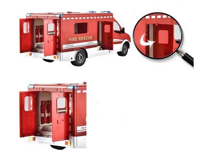 Радиоуправляемый пожарный фургон масштаб 1:18 – это реалистичная модель пожарной машины, управляя которой ребенок сможет ощутить все эмоции спасательной операции по тушению пожара. Все движения как во время настоящей спасательной операции. Дополнительная функция – машинка имеет световые эффекты - мигалку сине-красного цвета и звуковую пожарную сигнализацию. Кроме того, боковая и задние двери фургона открываются, поэтому с собой можно взять пожарную команду. В комплекте 2 огнетушителя и пожарная лестница.