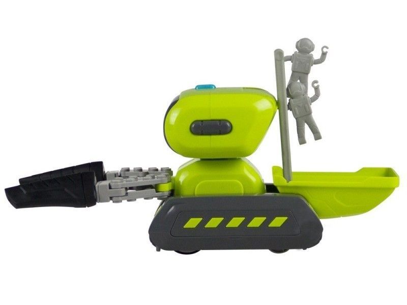 Мультяшный робот-погрузчик Jiabaile с командой помощников будет очень интересен детям. Своими передними конечностями погрузчик захватывает не тяжелые предметы и способен перевезти его в нужное место. Команда из 2 человечков снимет кузов и погрузчик сможет полностью загрузить его. Благодаря гусеничному ходу робот передвигается не только по гладкой поверхности, но и преодолевает небольшие препятствия. Придумывайте игры вместе с детьми, способствующие развитию интеллекта детей.